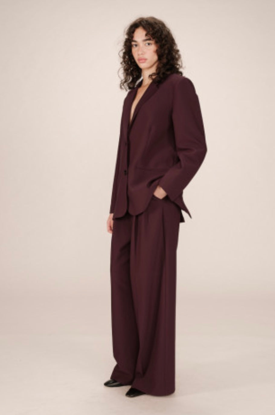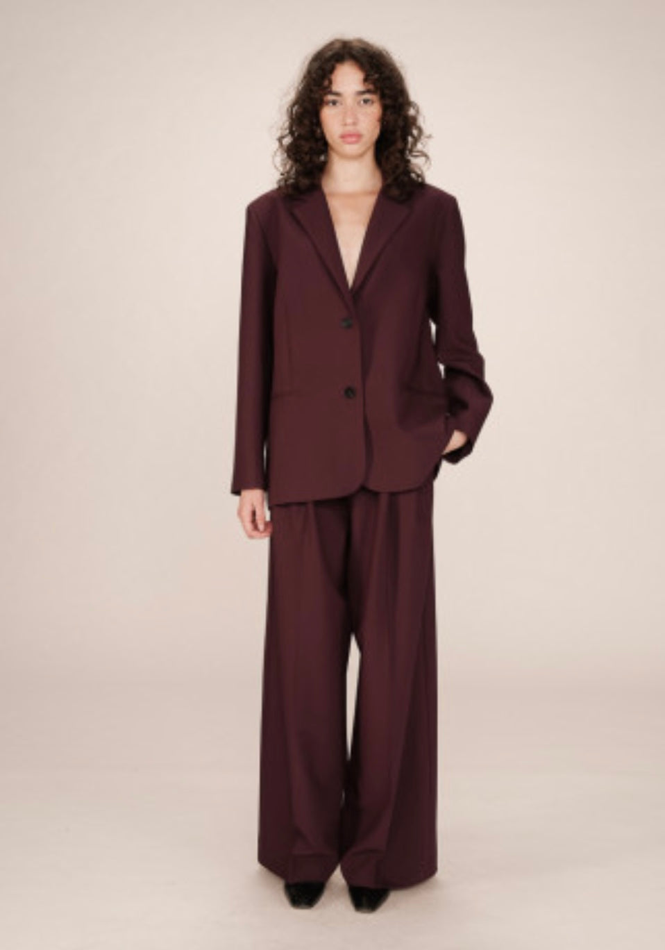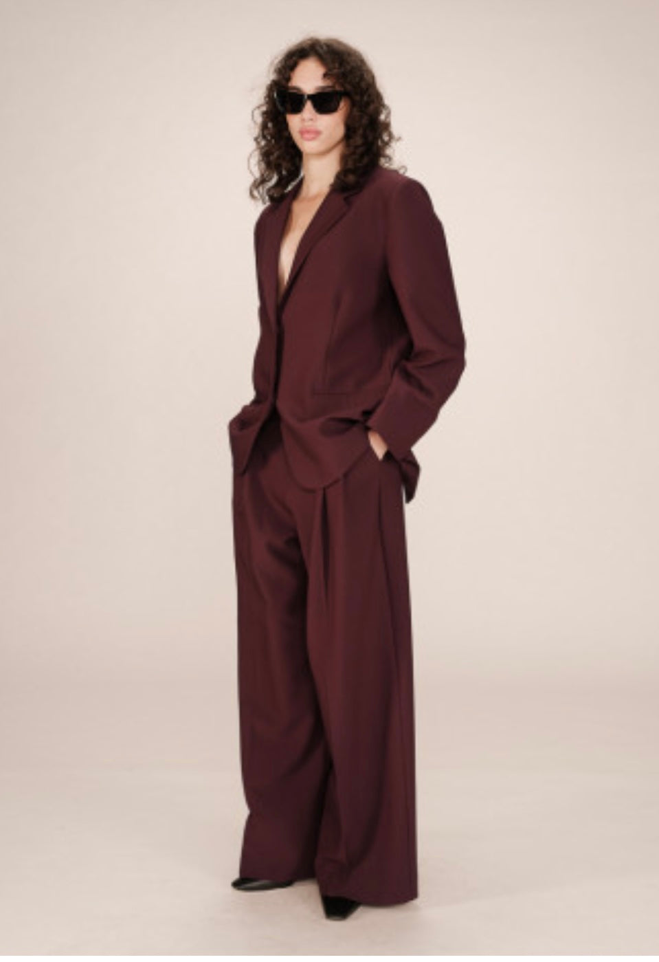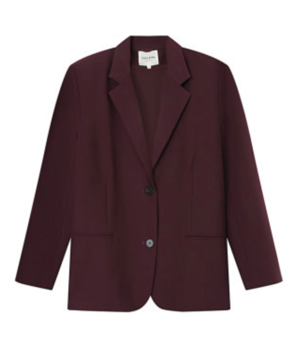 Leicht Oversize geschnittener Blazer in den Trendfarben des Herbstes - bordeaux und dunkelbraun.