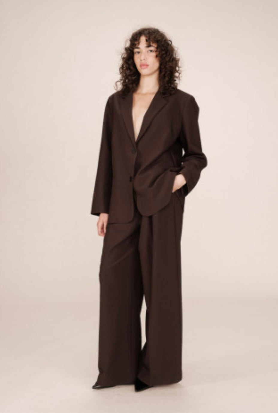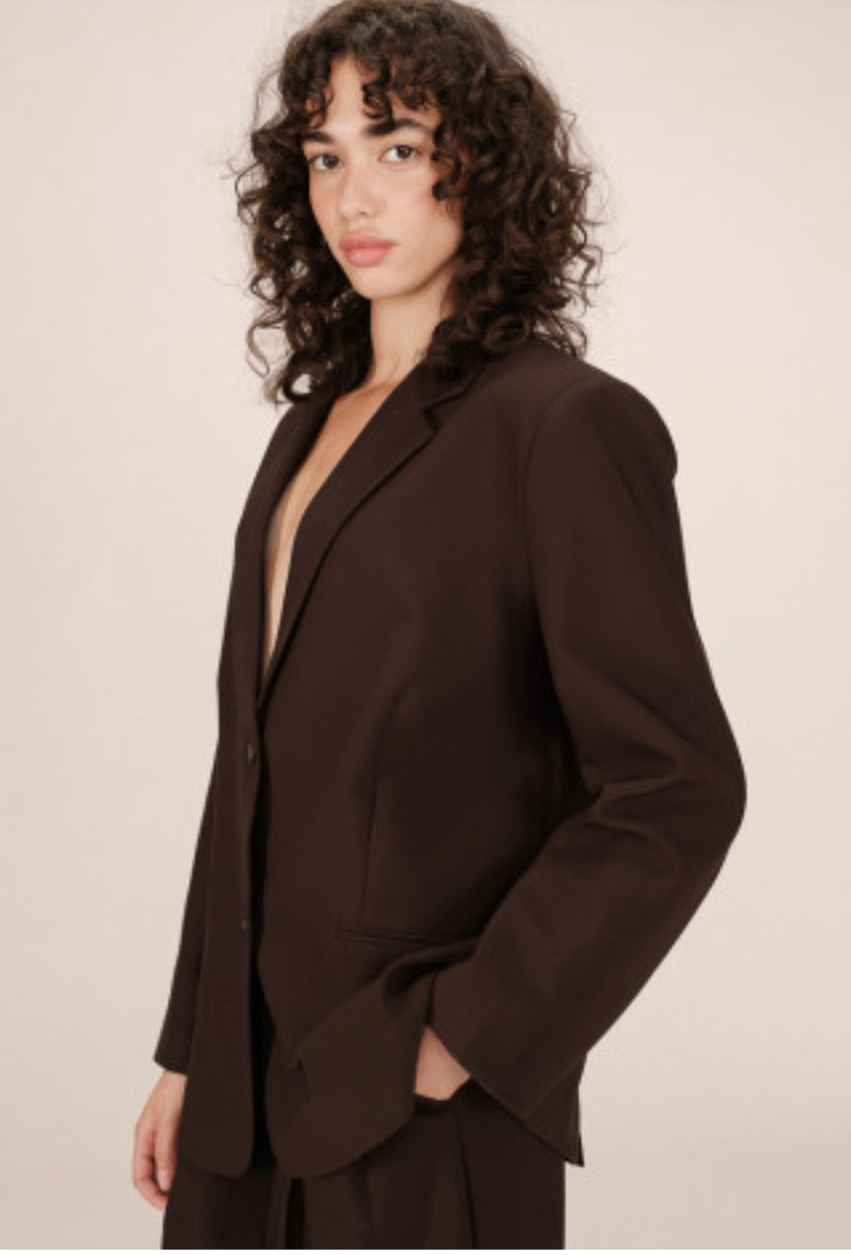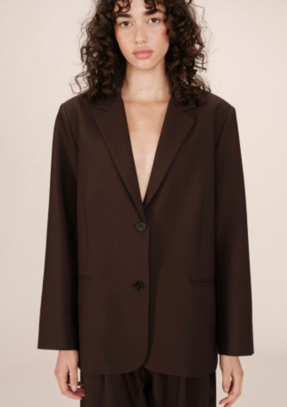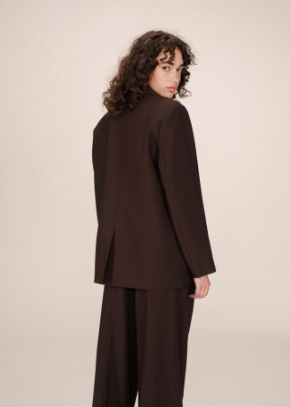 Leicht Oversize geschnittener Blazer in den Trendfarben des Herbstes - bordeaux und dunkelbraun.