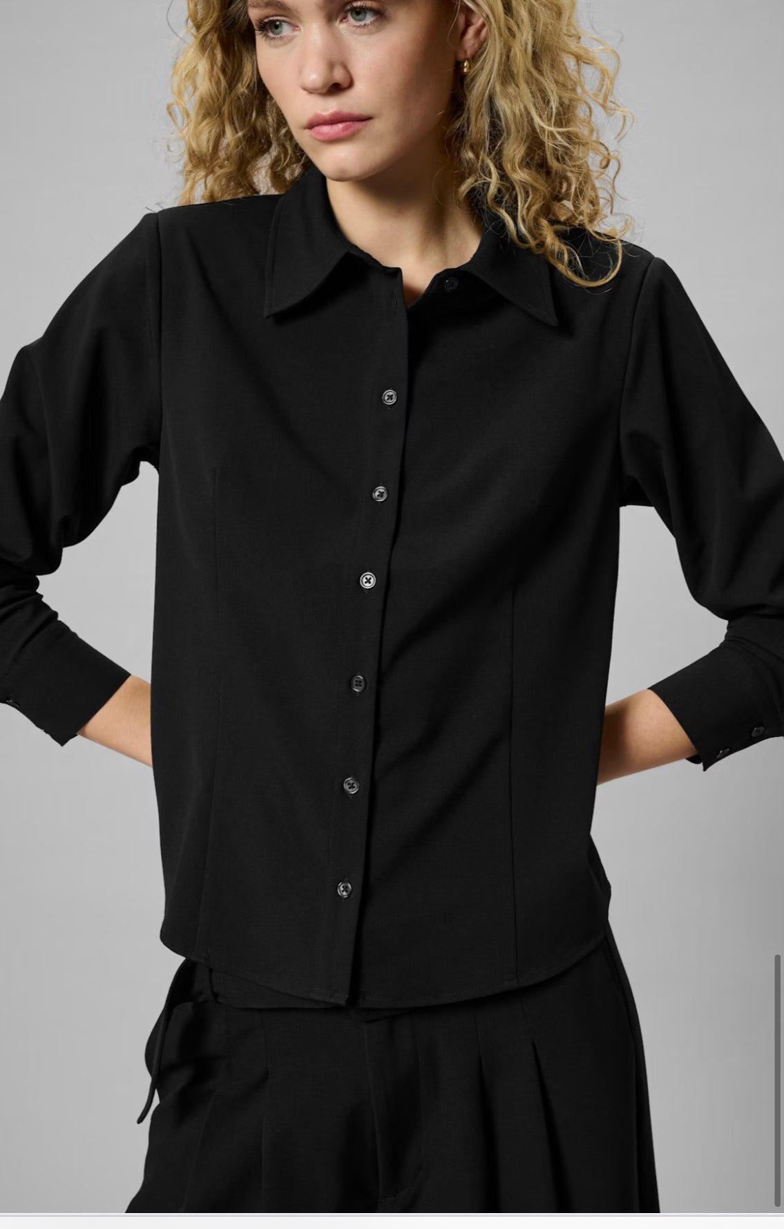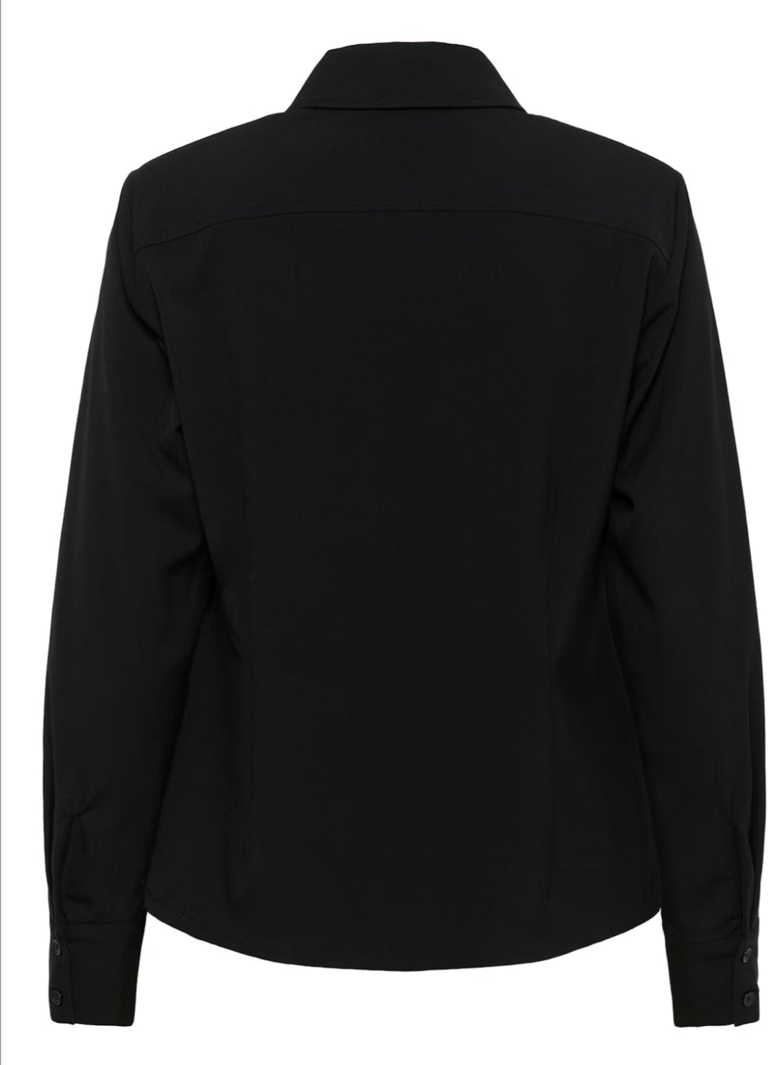 Klassisch geschnittene Bluse mit Knopfleiste vorne, die Bluse hat Schulterpolster, welche auch entnommen werden können. Sie ist tailliert geschnitten.