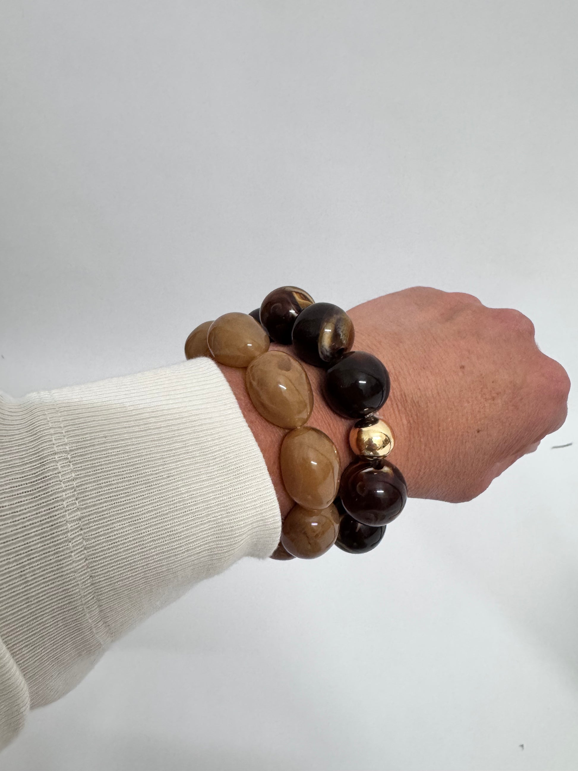 mit großen Glasperlen. Passt perfekt zu allen Naturfarben und Brauntönen. Ihr könnt das Band toll mit weiteren Armbändern aus unserer Kollektion ergänzen