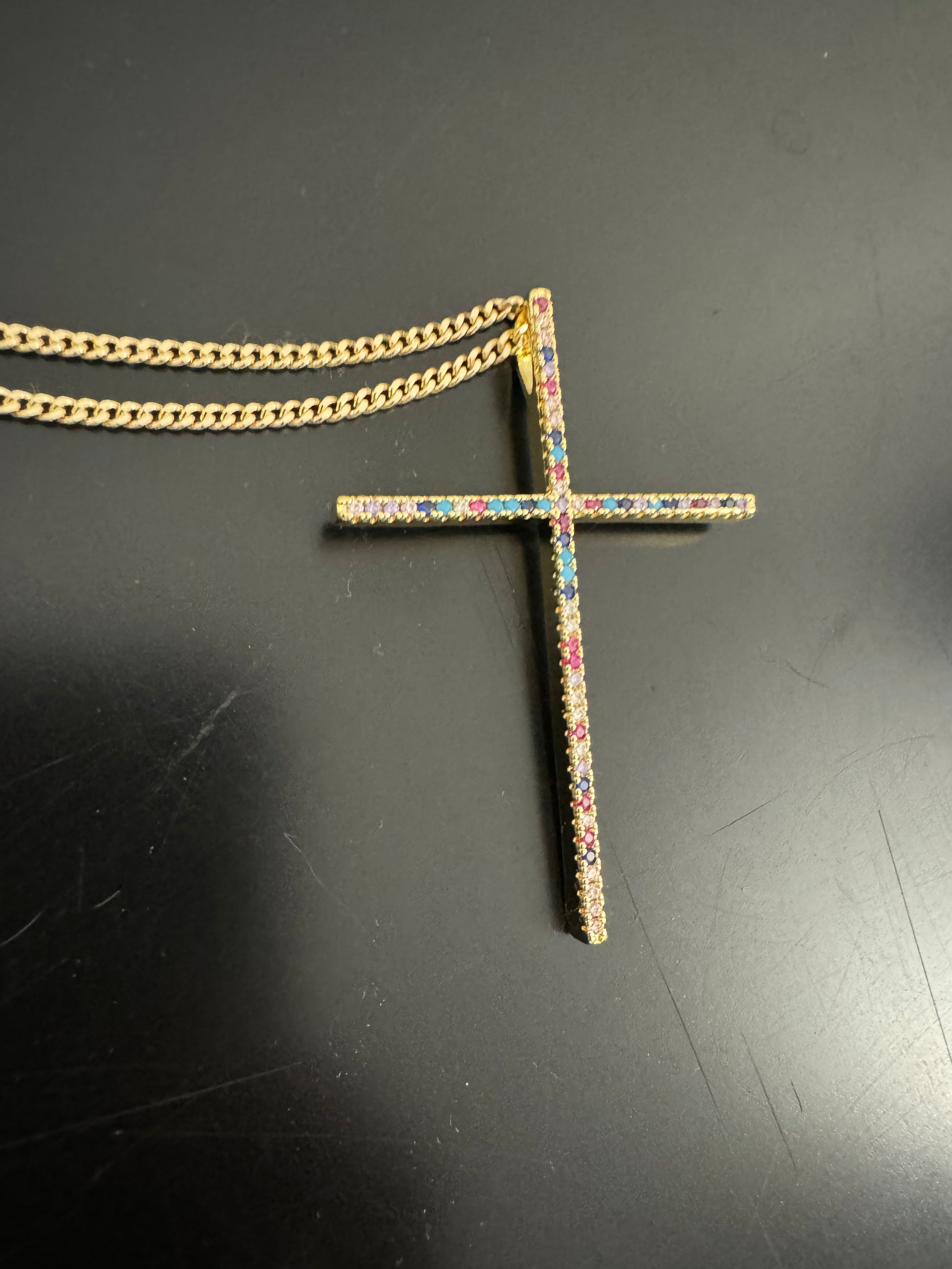 Anhänger „Kreuz“ mit kleinen bunten Steinen 5 cm x 3,8 cm