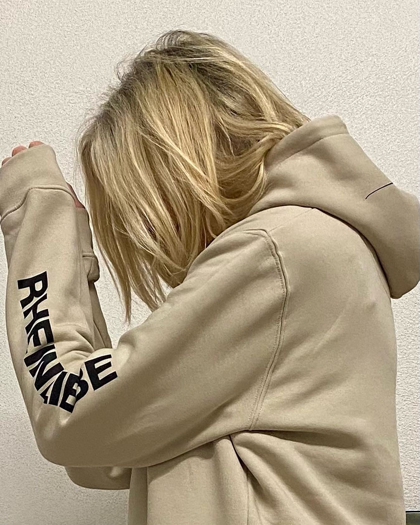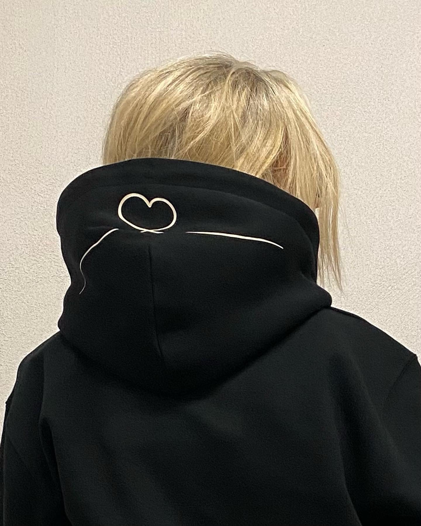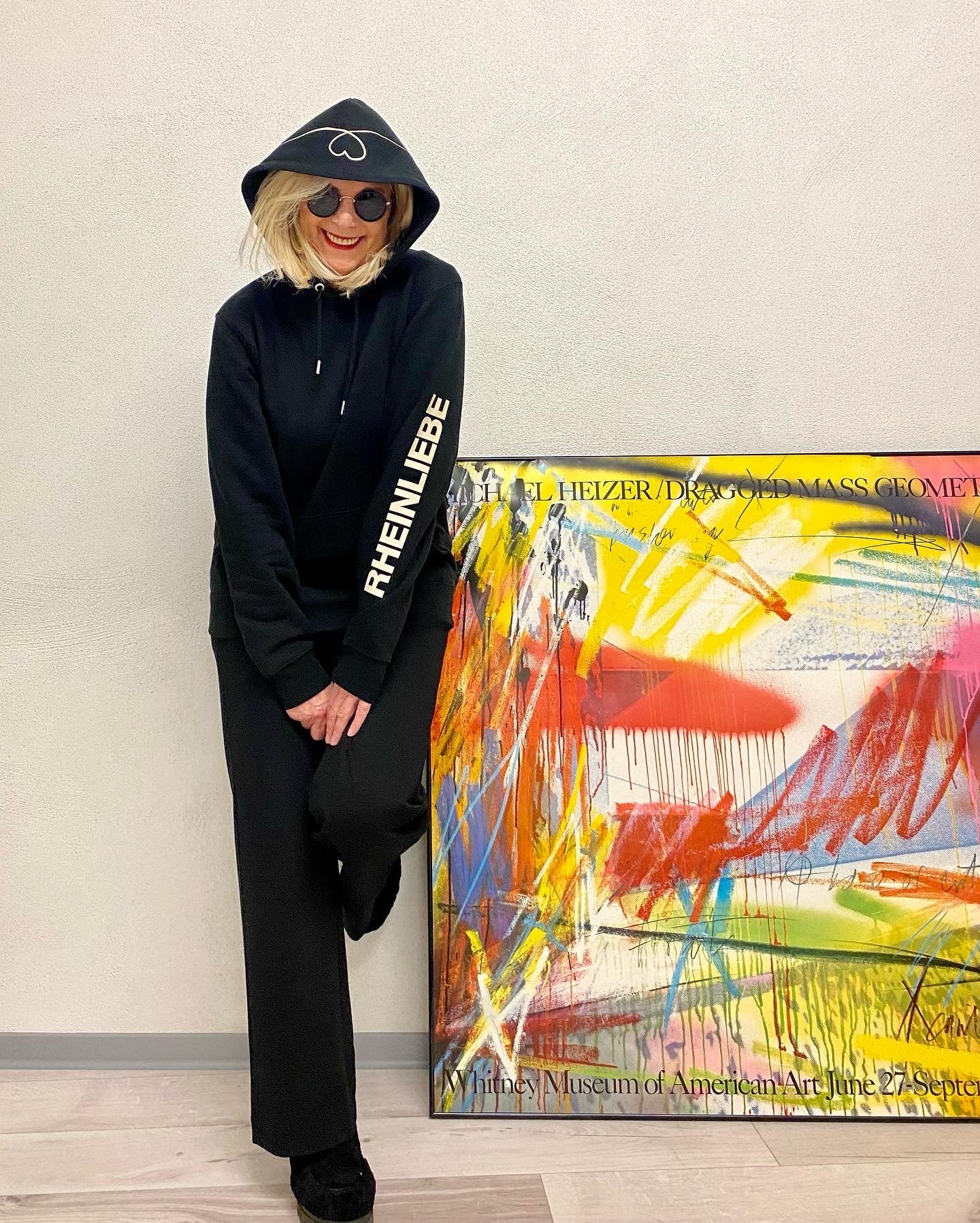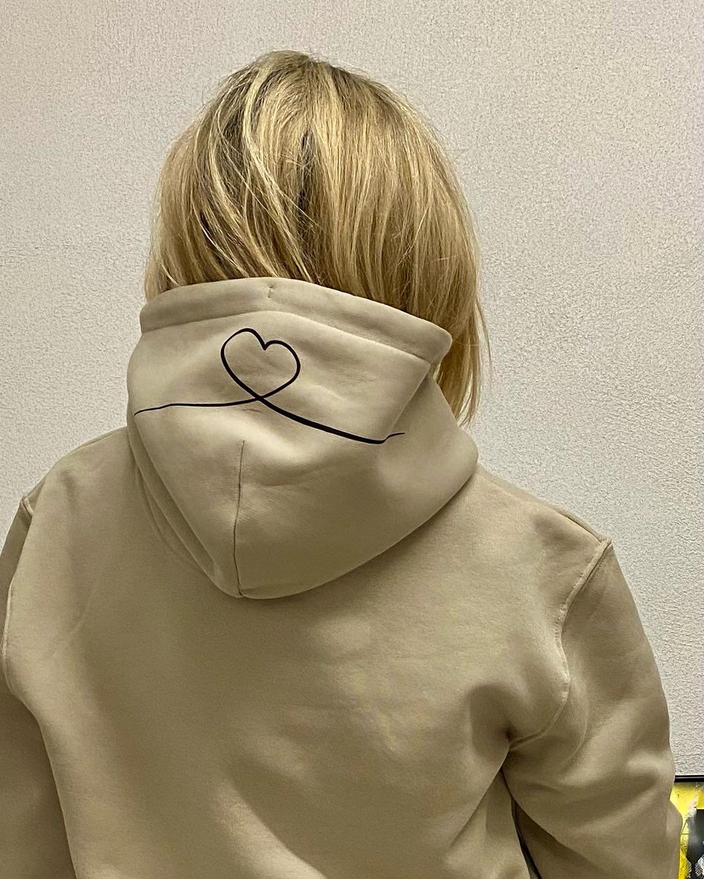 kuscheliger Hoodie mit RHEINLIEBE Aufdruck auf dem Arm, Kängurutaschen, Aufdruck auf der Kapuze.