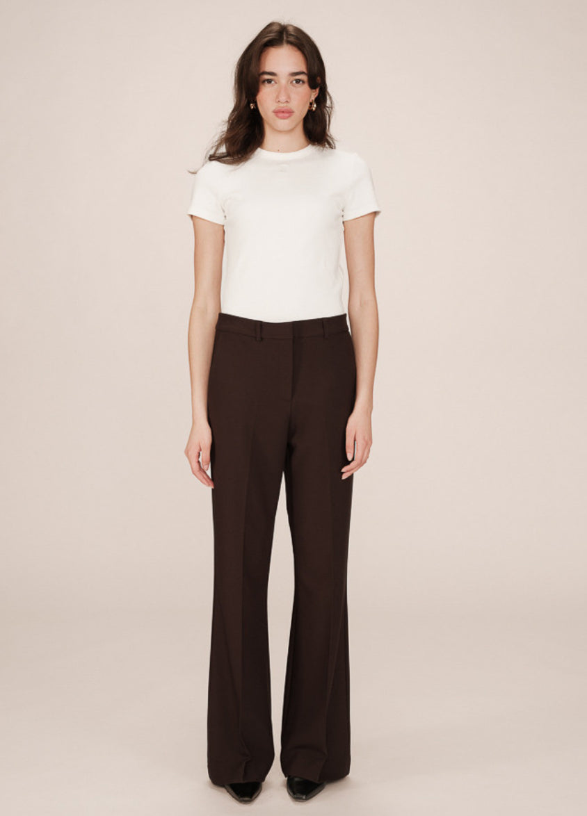 Anzugshose von Grace&Mila, ein Klassiker in einem Schnitt der begeistert. Gibt eine tolle Silhouette, oben tailliert geschnitten und unten etwas ausgestellt. Der Bund mit Gürtelschlaufen und vorderen Falten sorgt für einen optimalen bequemen Sitz.