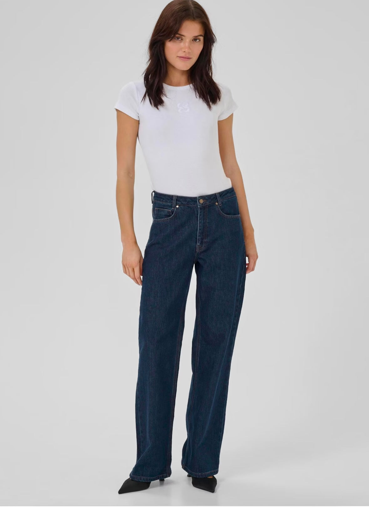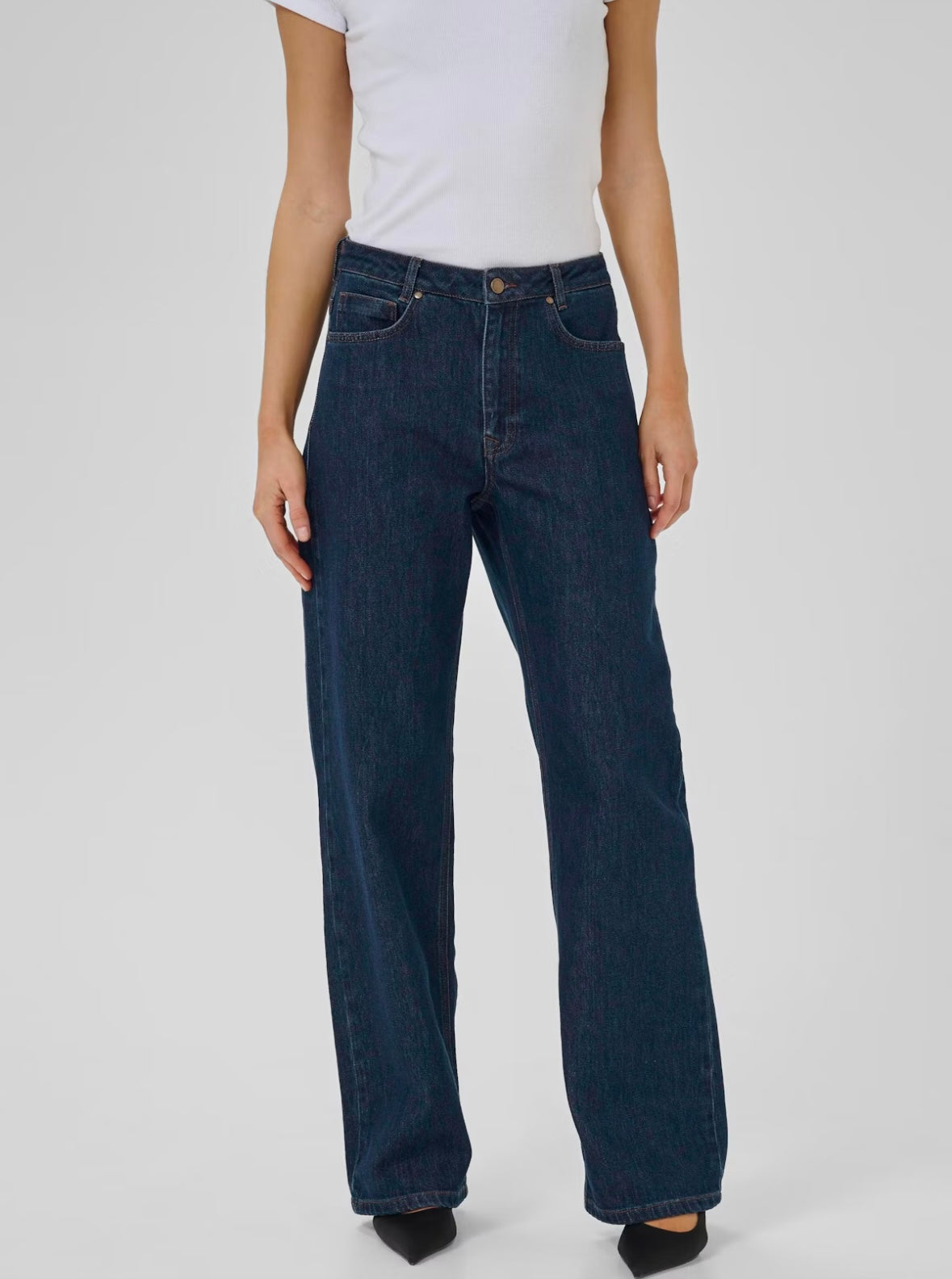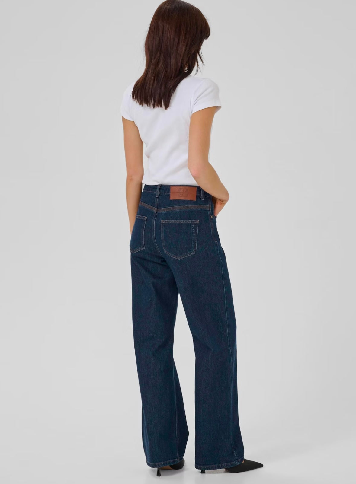 Angesagte dark Denim Jeans, 5-Pocket, leicht ausgestellt, hoher Bund.