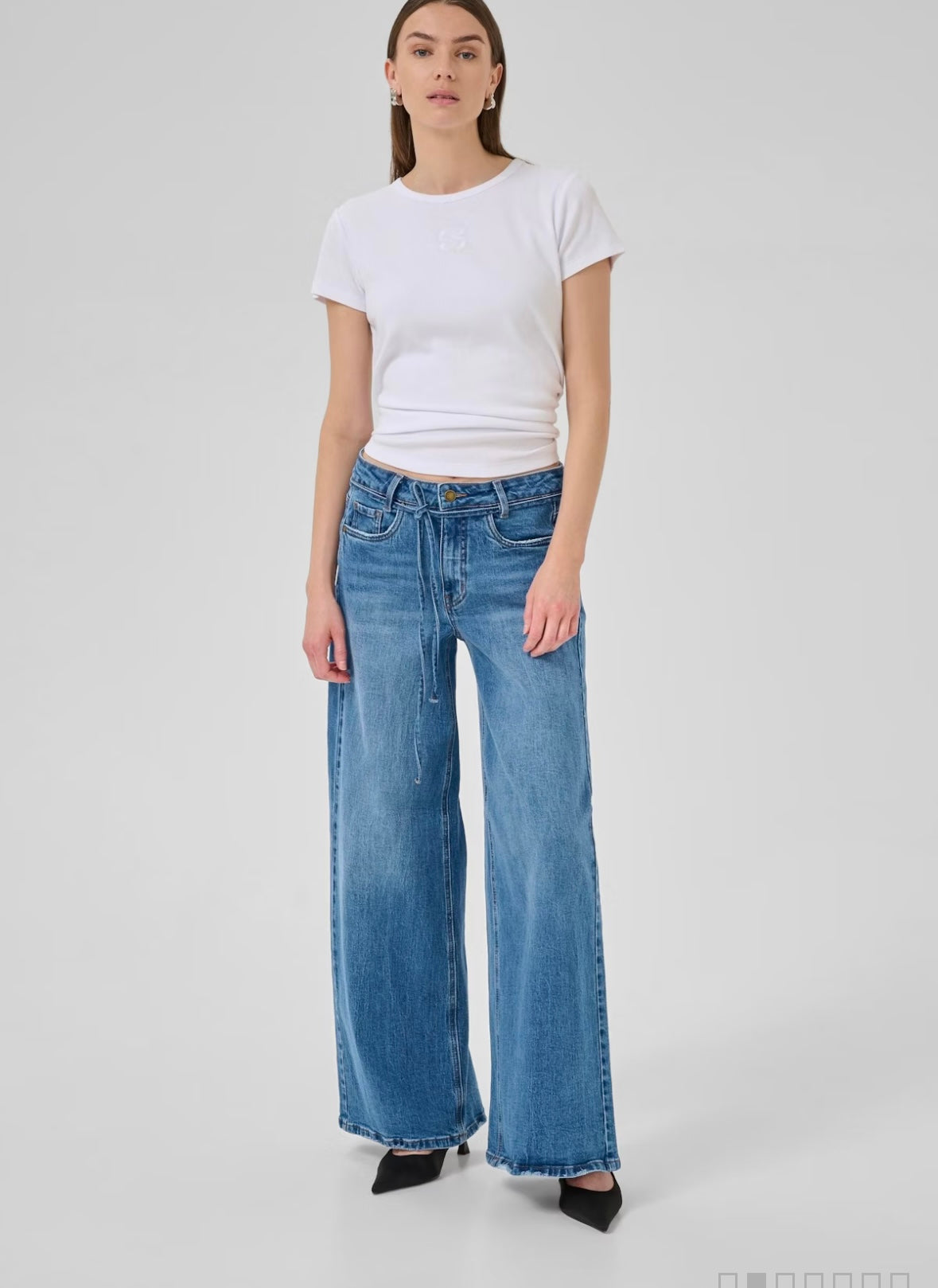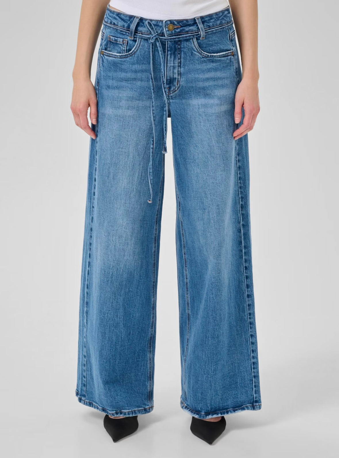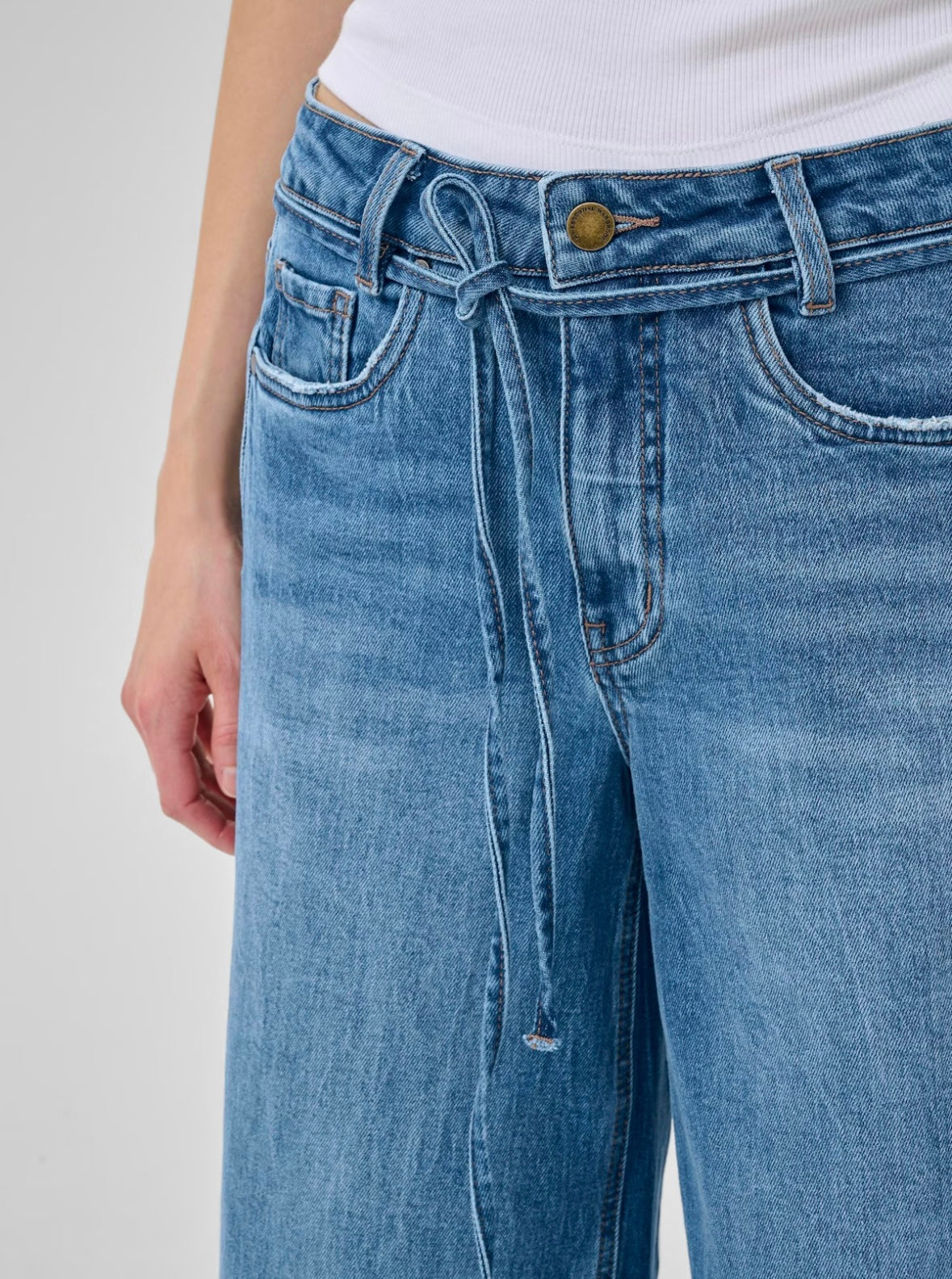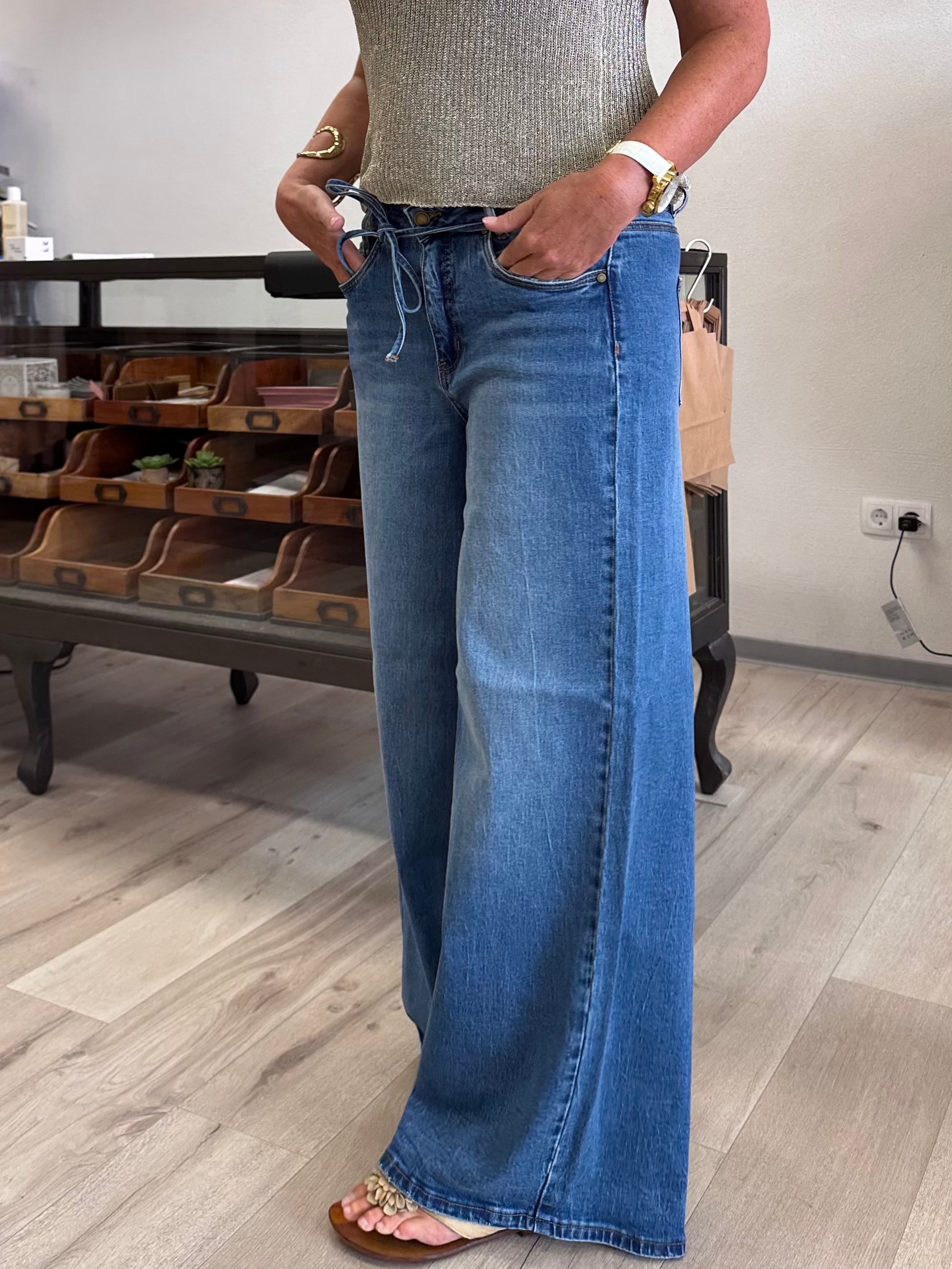 Lässige Jeans mit weitem Bein und Bindegürtel für eine entspannte Passform.