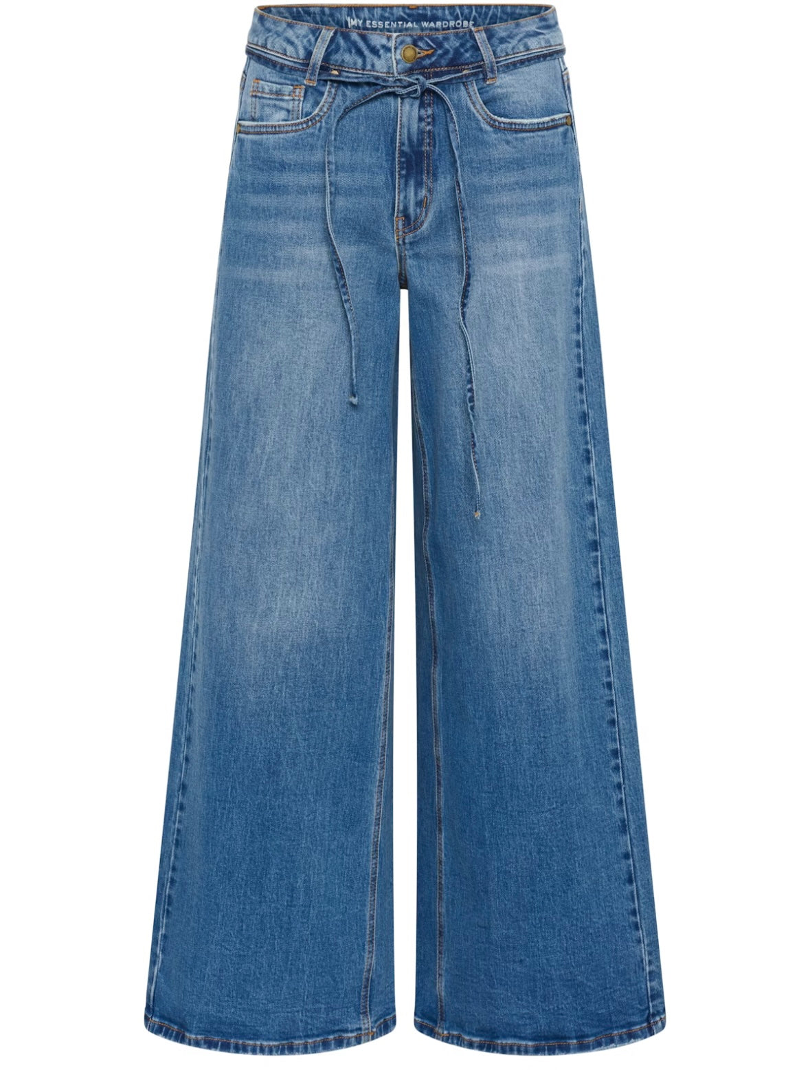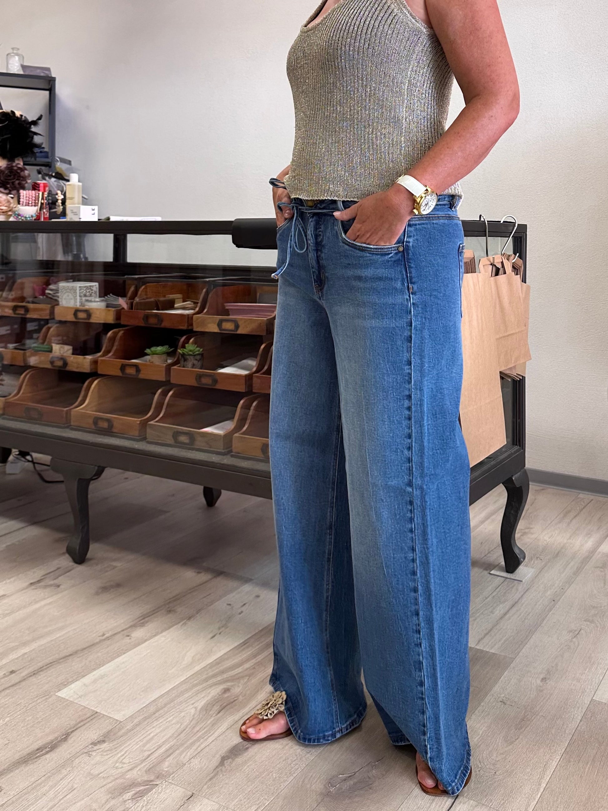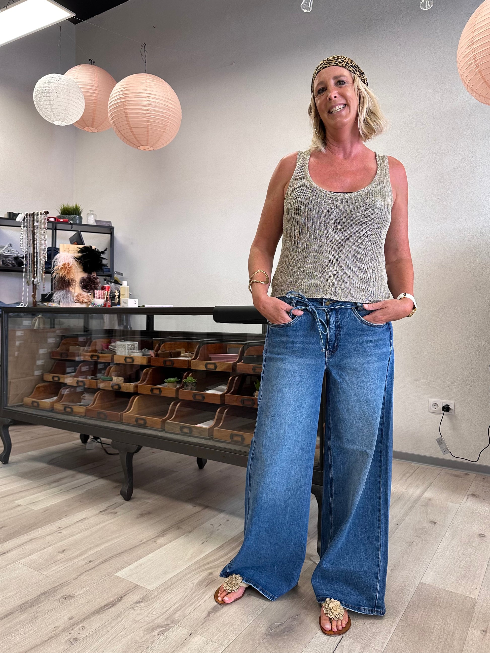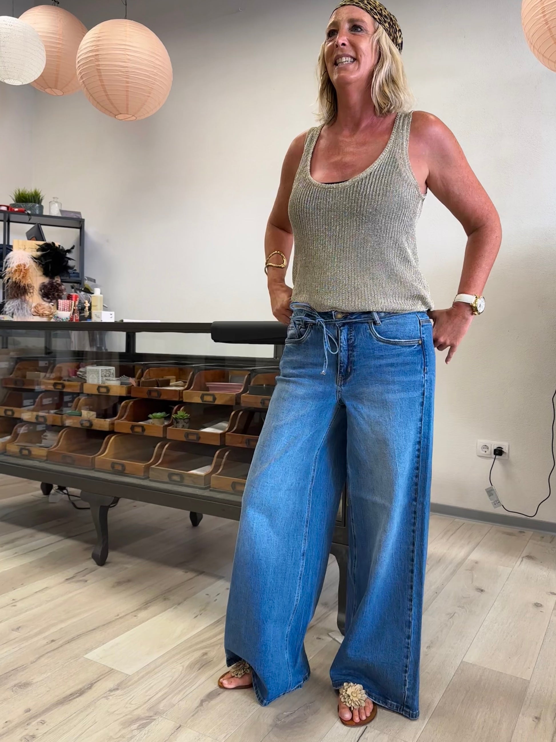 Lässige Jeans mit weitem Bein und Bindegürtel für eine entspannte Passform.