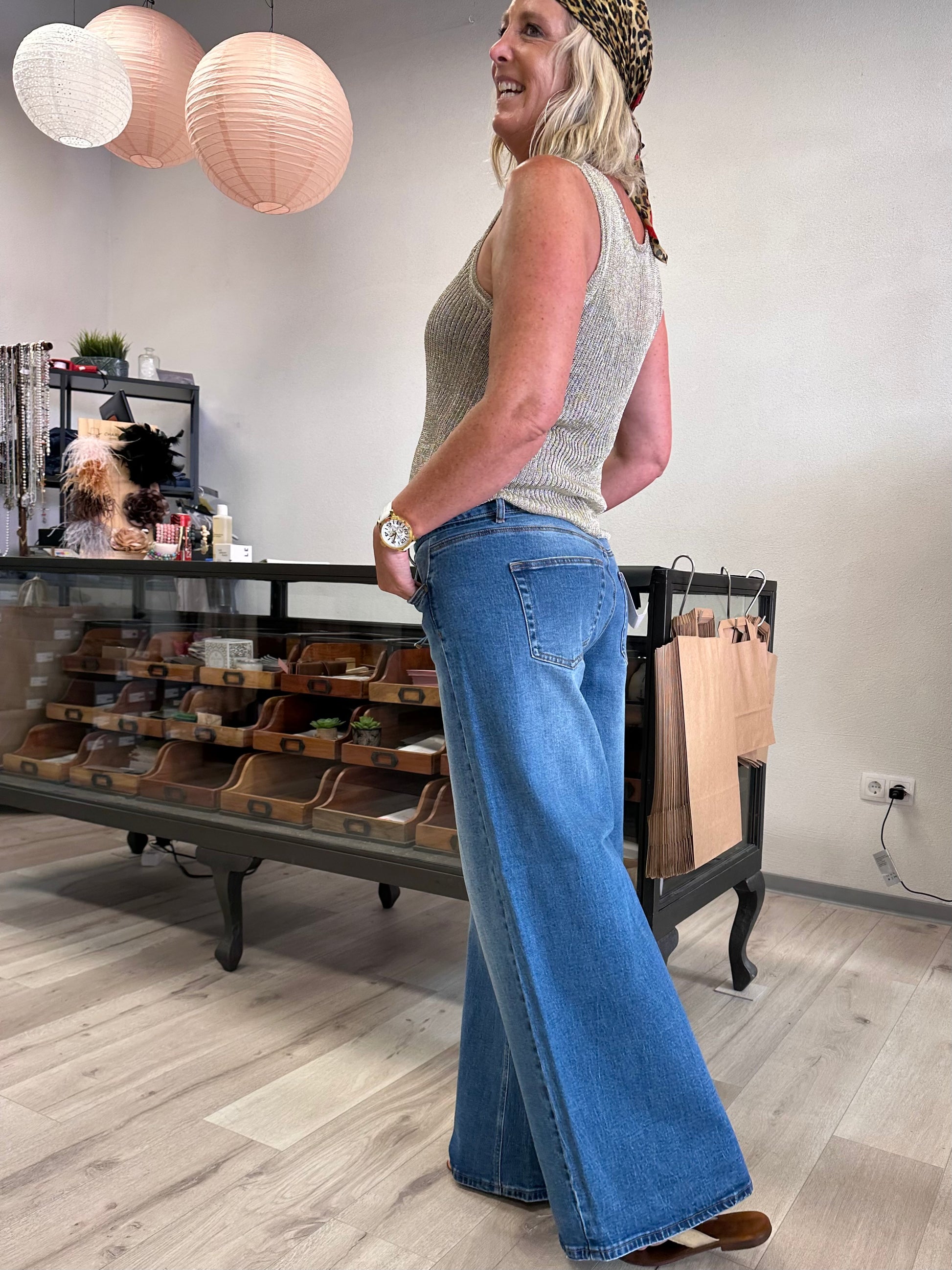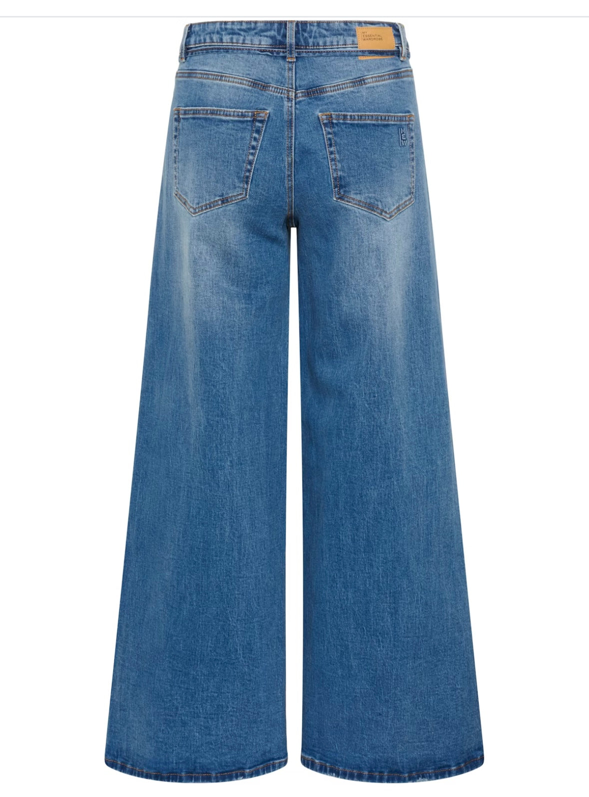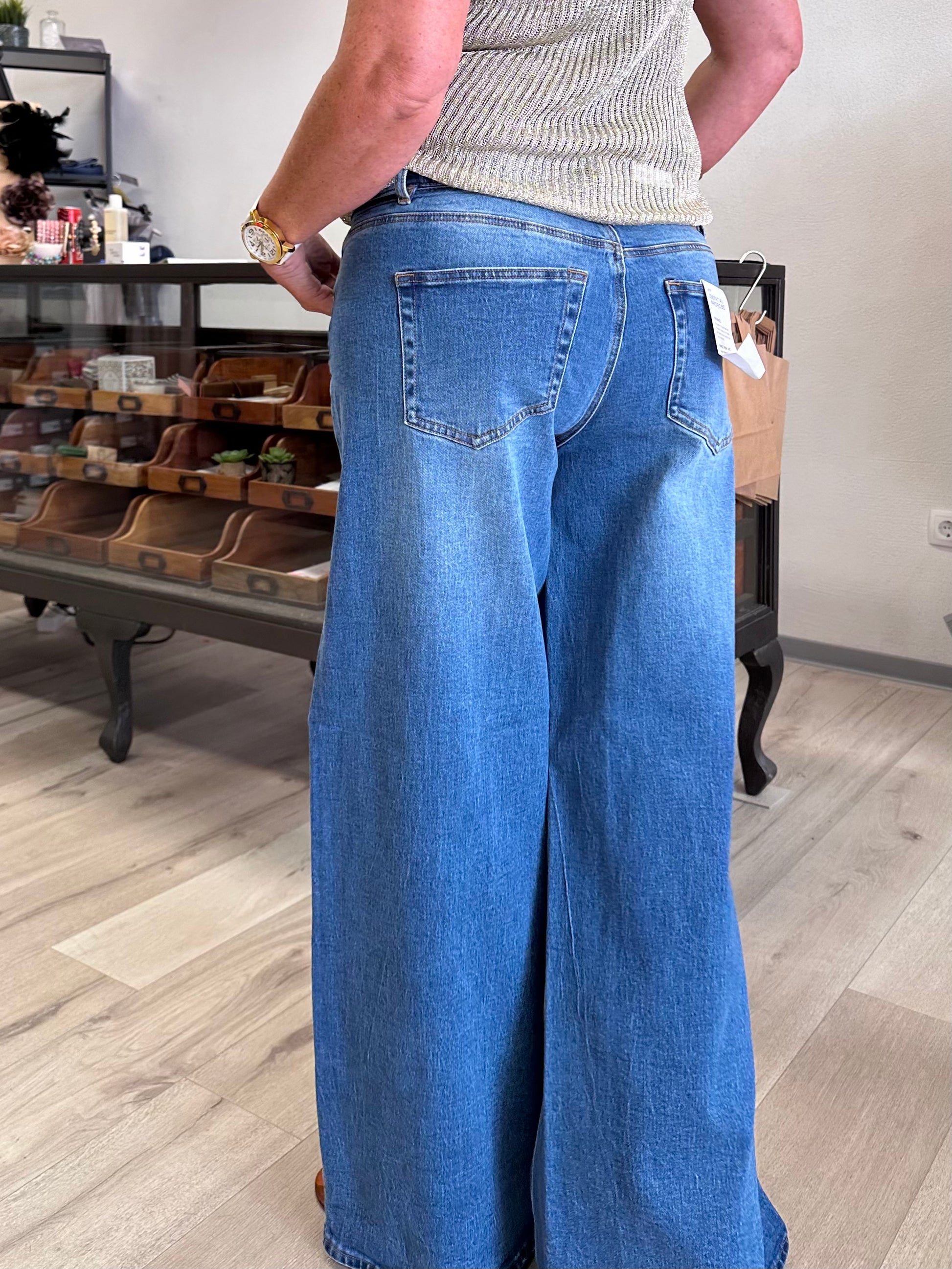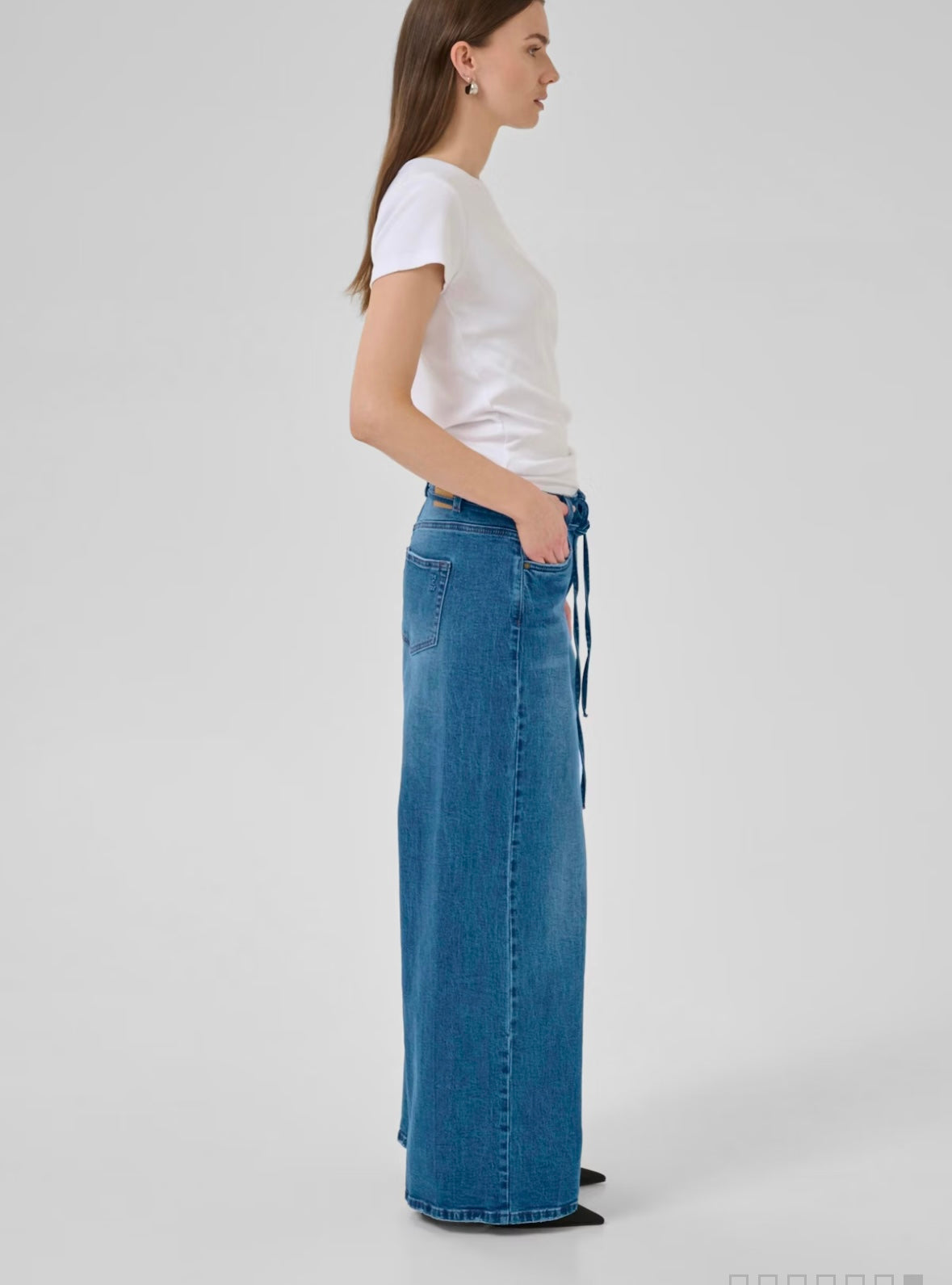 Lässige Jeans mit weitem Bein und Bindegürtel für eine entspannte Passform.