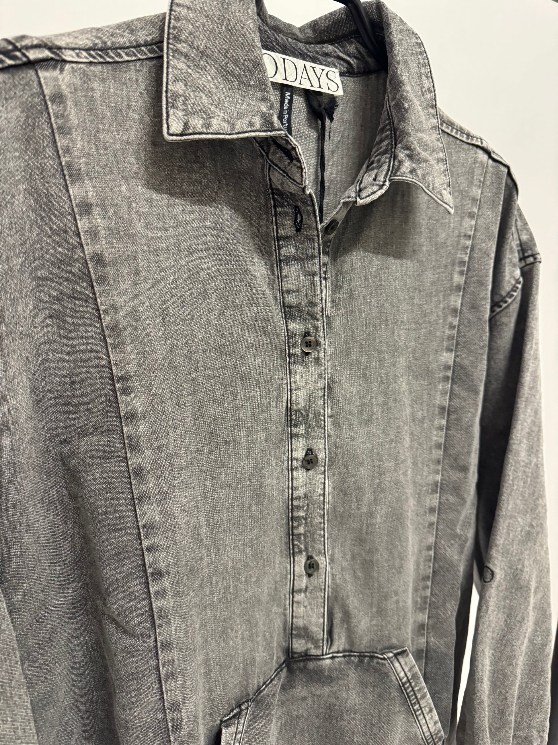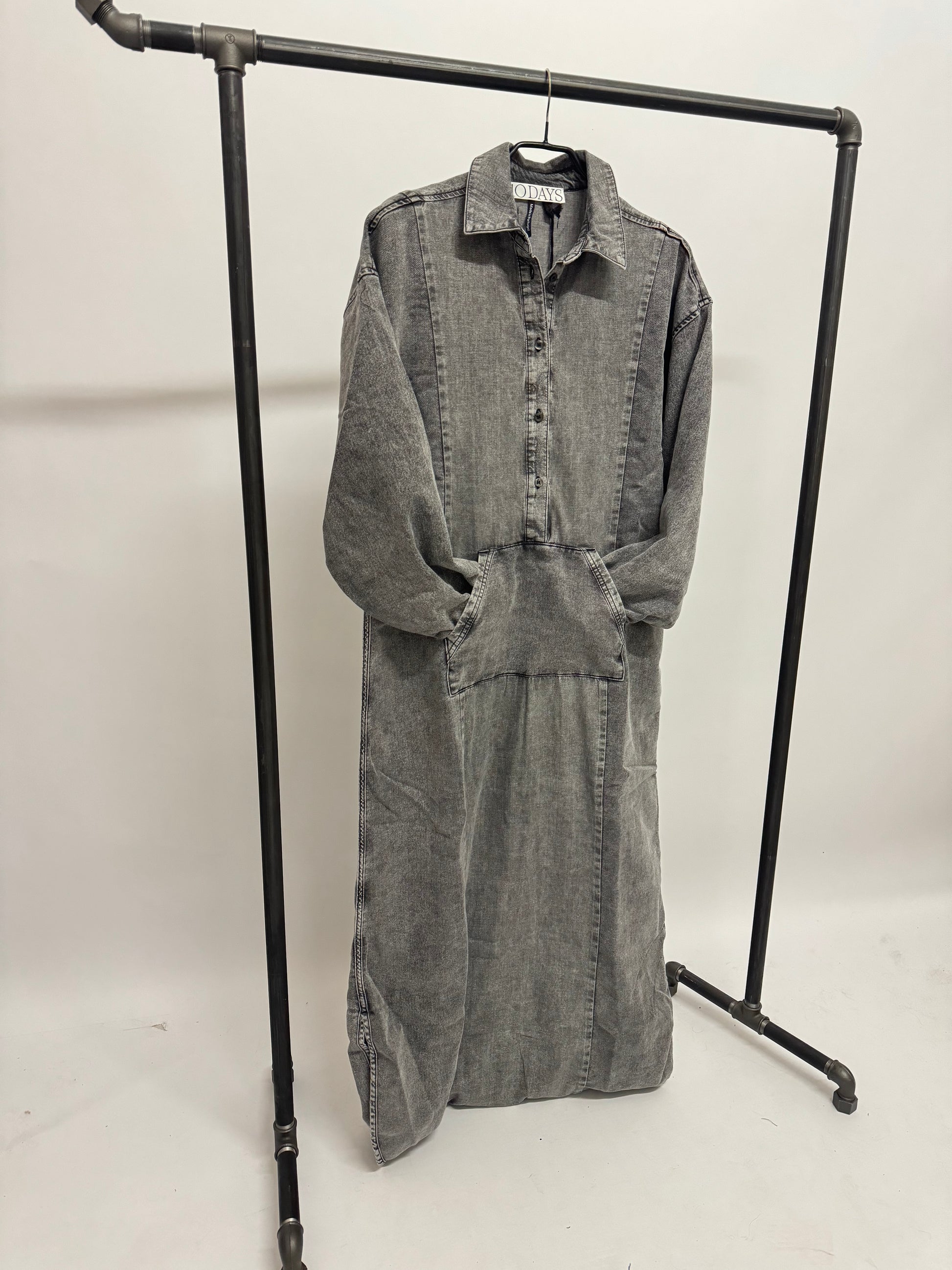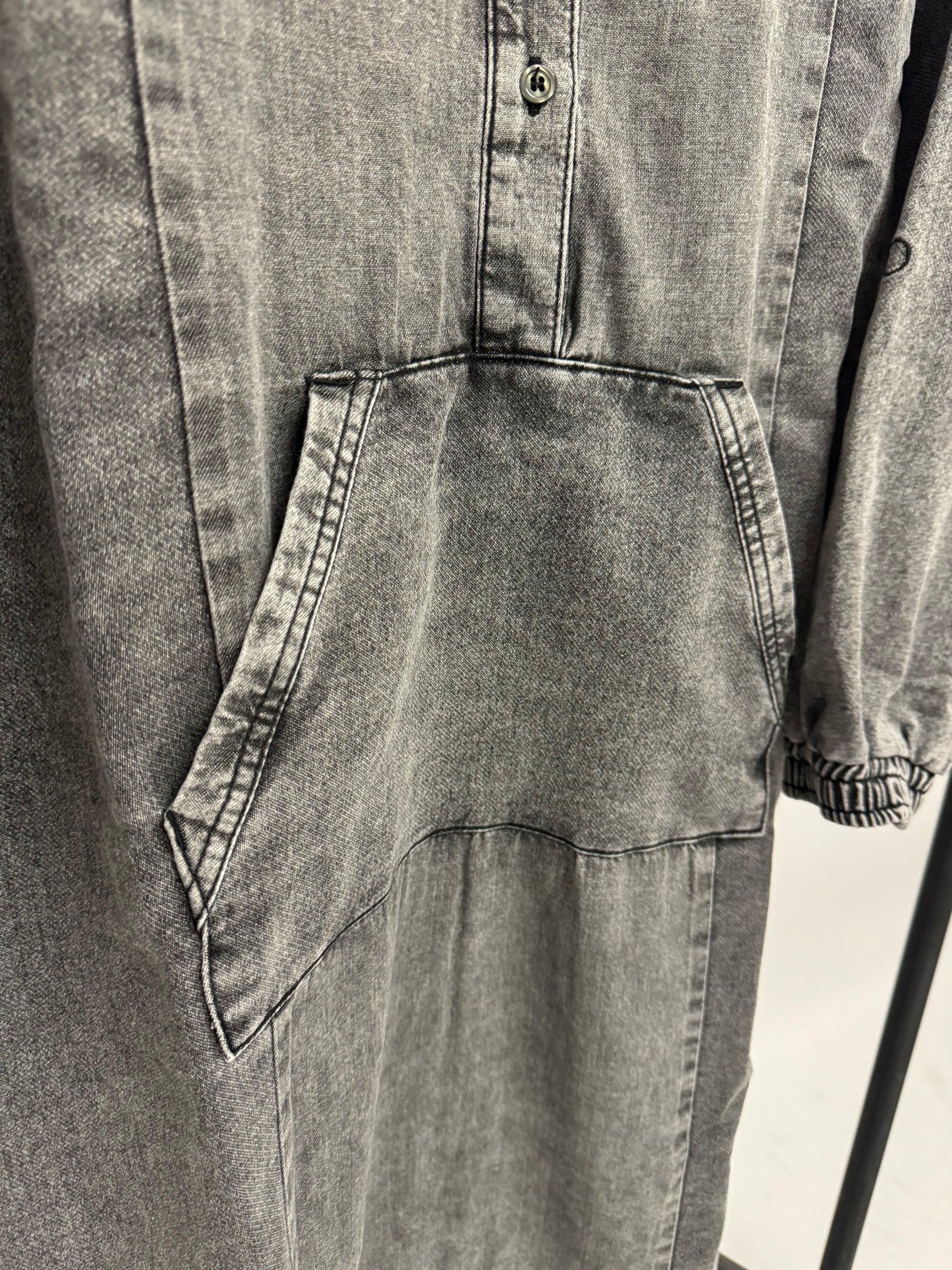 Cooles, lässiges Jeanskleid in relaxed fit aus Jog Denim - Kängurutasche vorn, einem abgerundetem Saum mit Seitenschlitzen, Gummibündchen und einem 10DAYS-Label auf der Rückseite. Oversize geschnitten!!