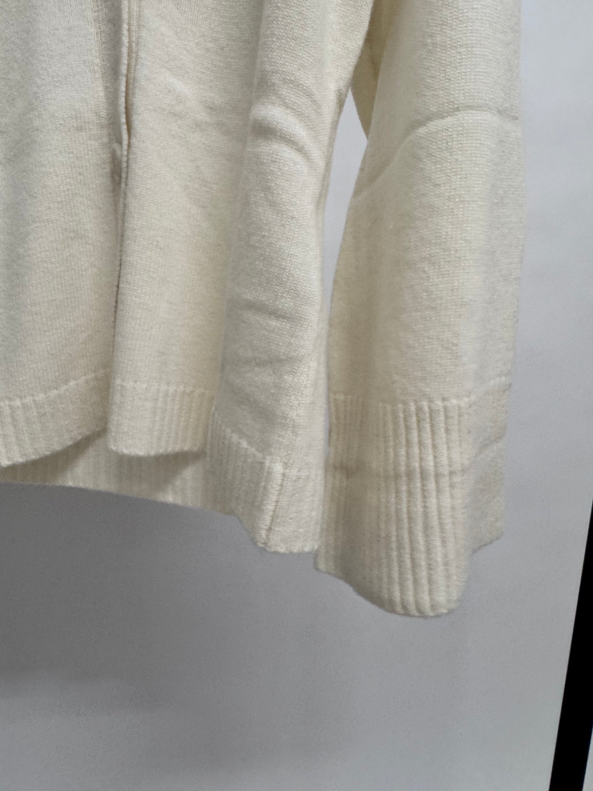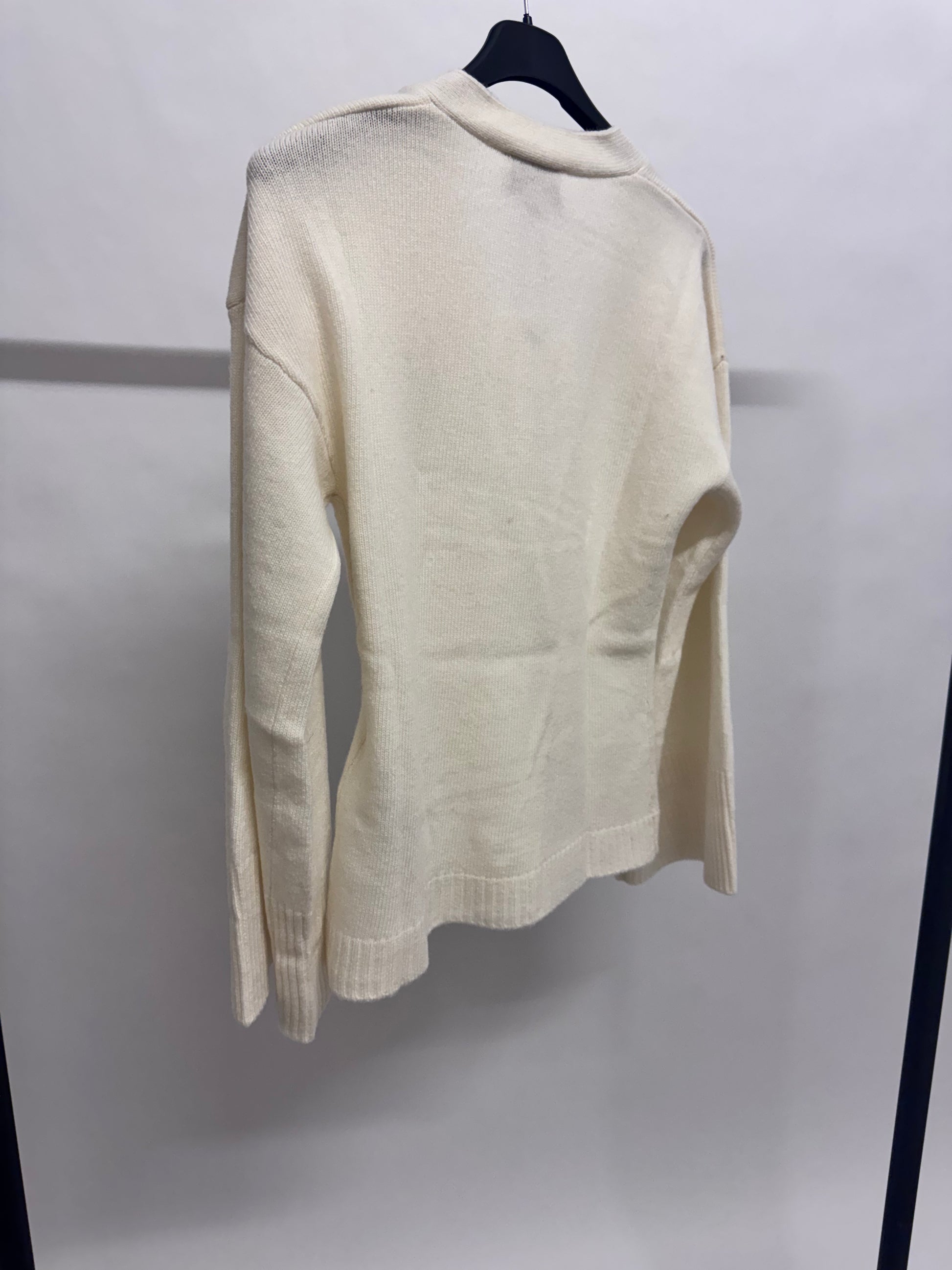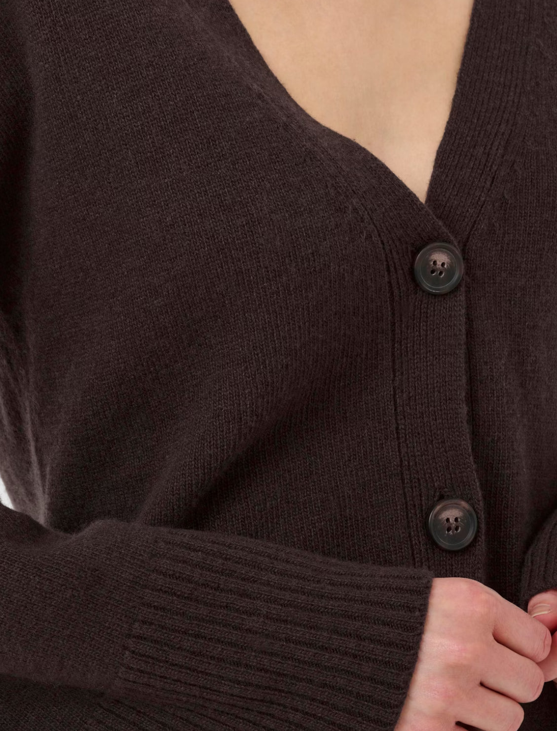 Cardigan mit V-Ausschnitt, durch die leichte Taillierung hat er eine wunderschöne Passform. Die Ärmel sind leicht überschnitten und weit geschnitten. Cardigan ist aus hochwertiger Wolle und Kaschmir