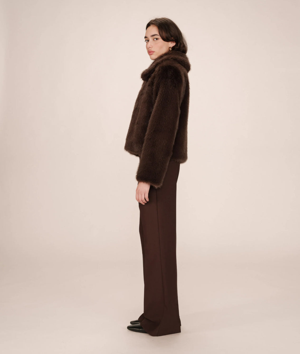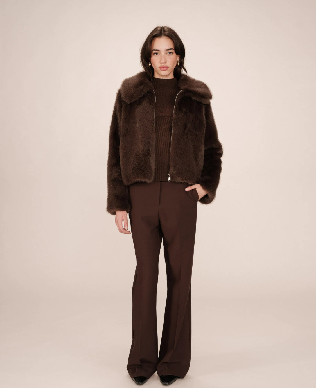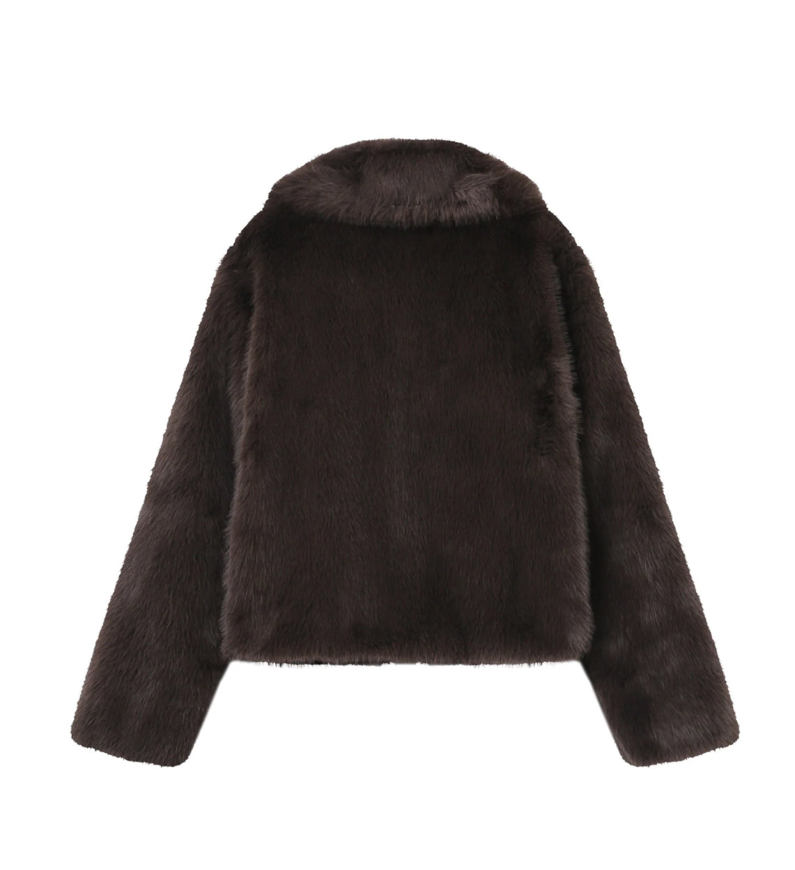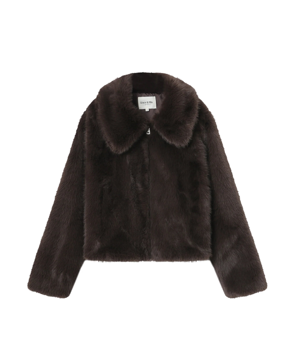 Die Kunstpelzjacke „Shonna“ von Grace&Mila für einen warmen, bequemen und glamourösen Herbst/Winter. Die Jacke hat ein kuscheliges Kunstfell, ist kurz geschnitten mit Kragen und Reißverschluss.