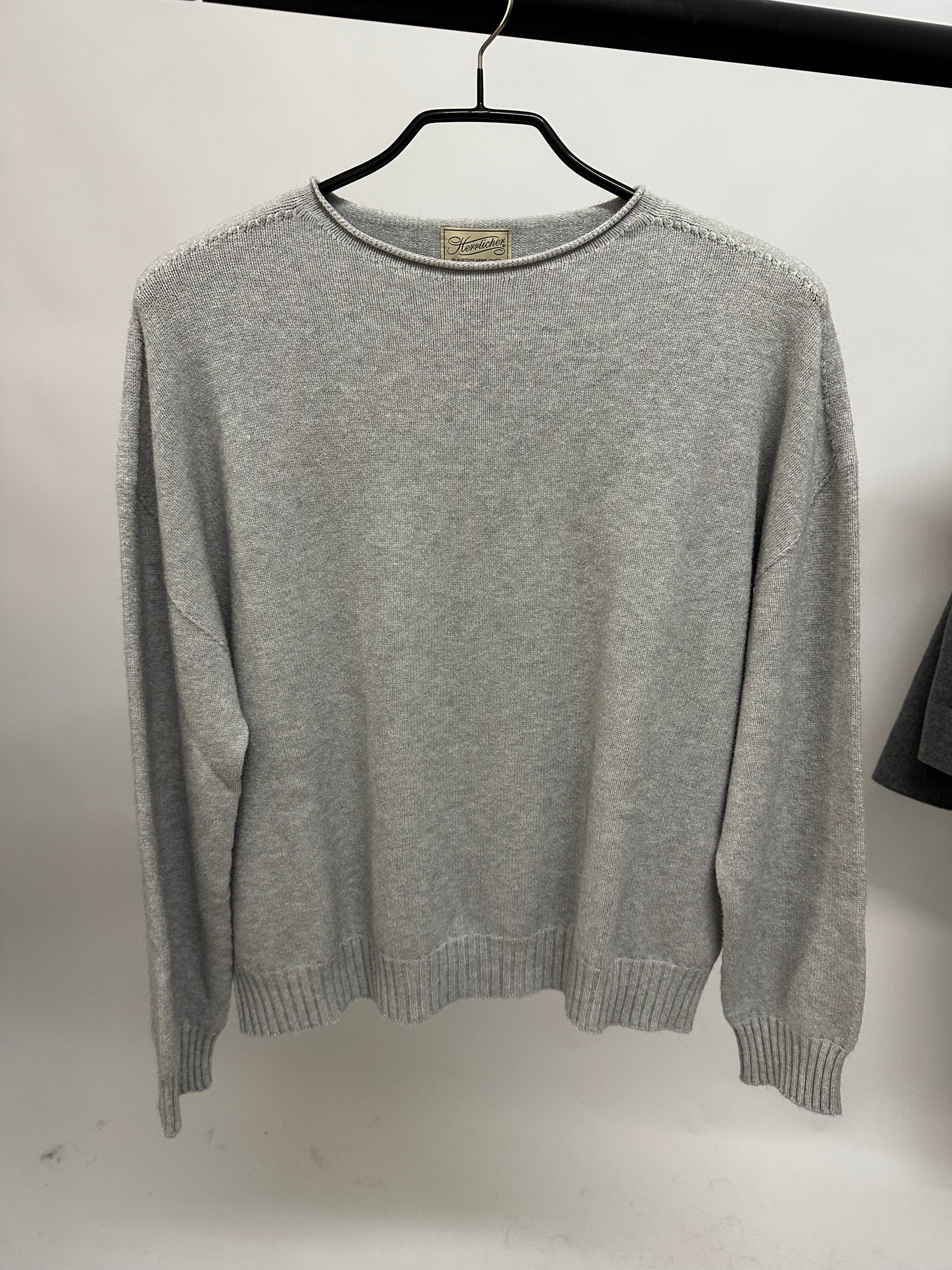 Super weicher, kuscheliger Rundhals-Pulli mit kleiner Ziernaht über Schulter, kastig geschnitten, großer Ripp-Bund als Abschluss.