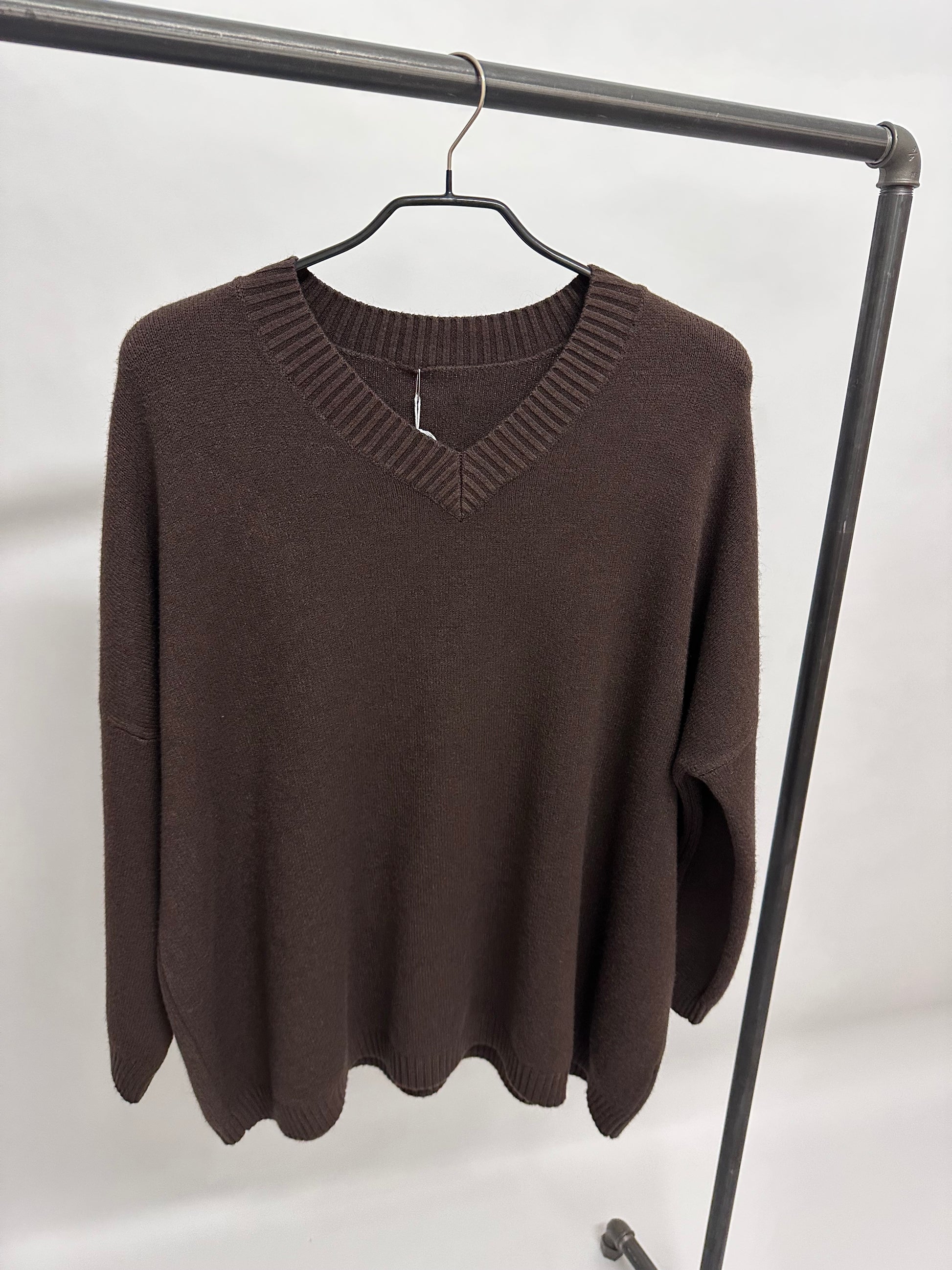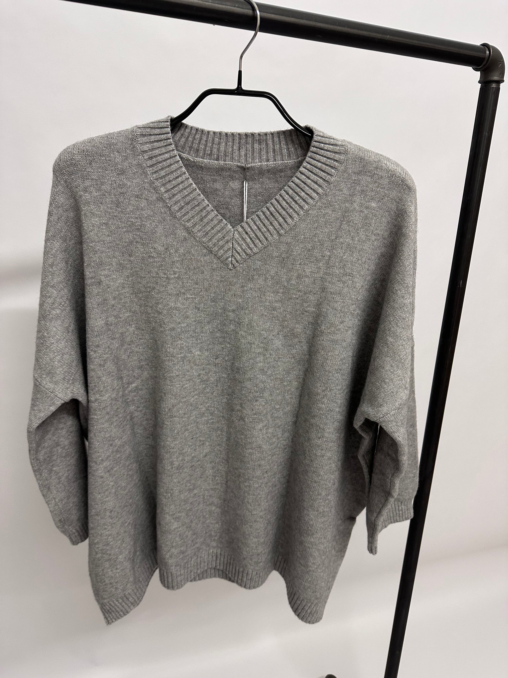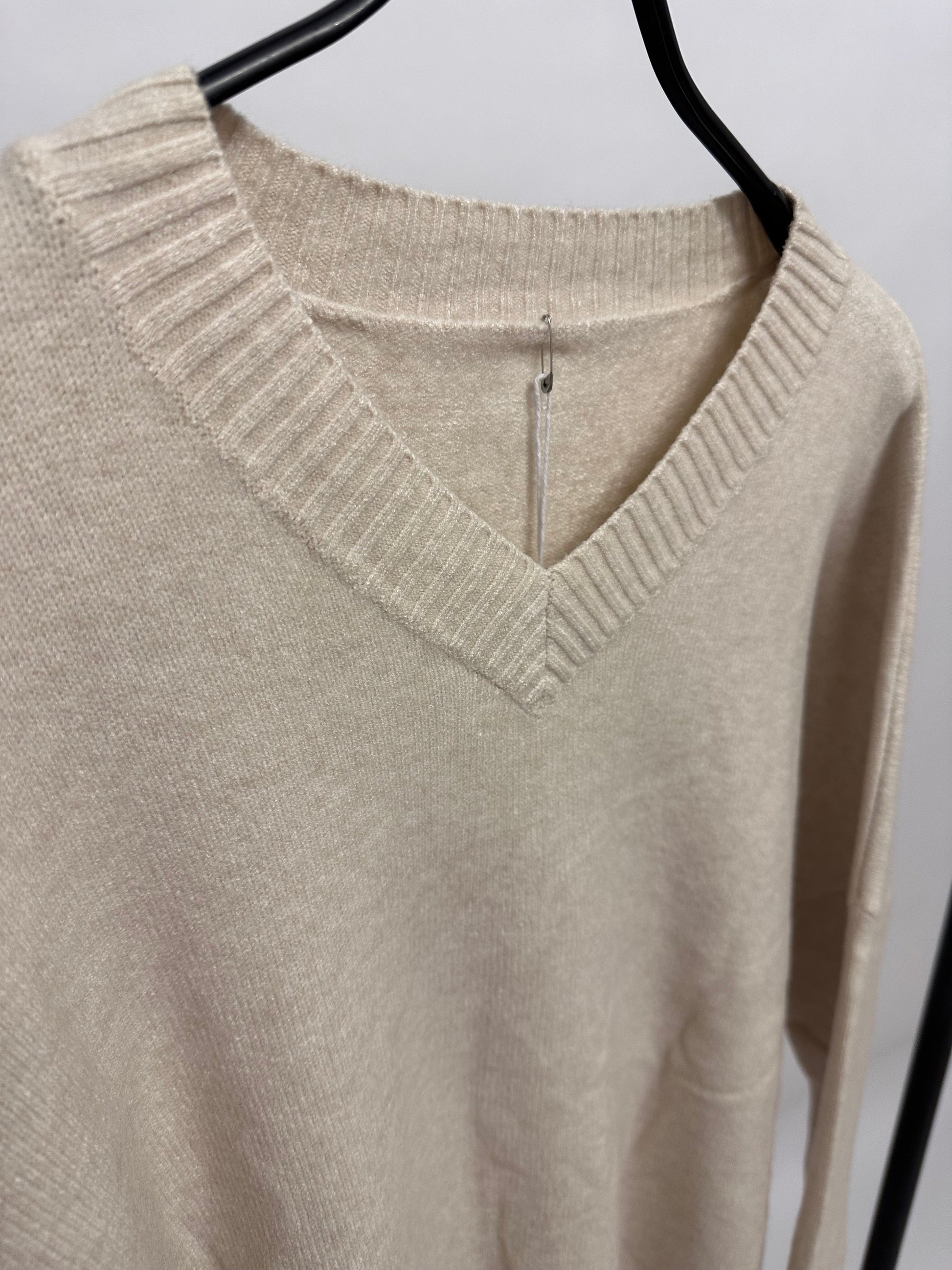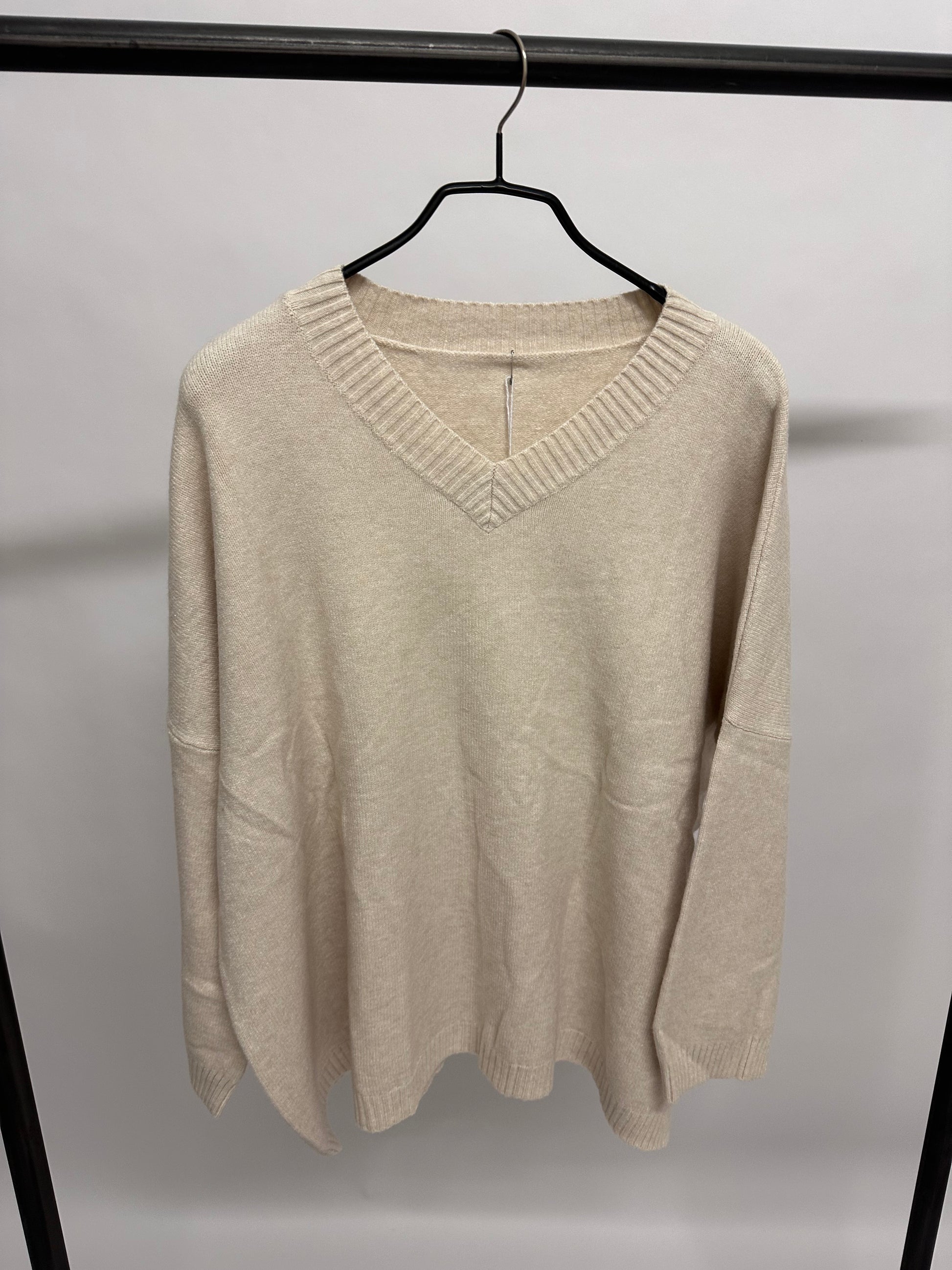 Kuscheliger Oversize Pulli mit V-Ausschnitt und Bündchen als Abschluss. Einfach ein Allrounder zum wohlfühlen.