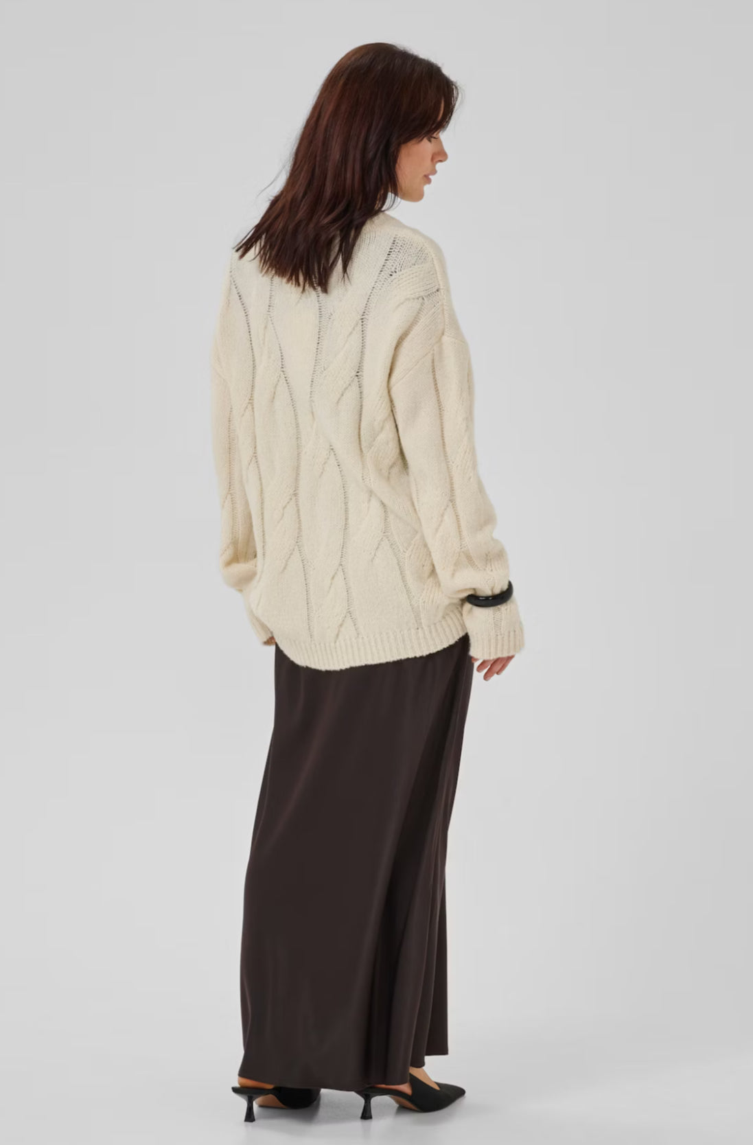 Wunderschöner Strickpullover von My Essential Wardrobe in Zopfmuster. Durch die lockere Passform lässt er sich super stylen.