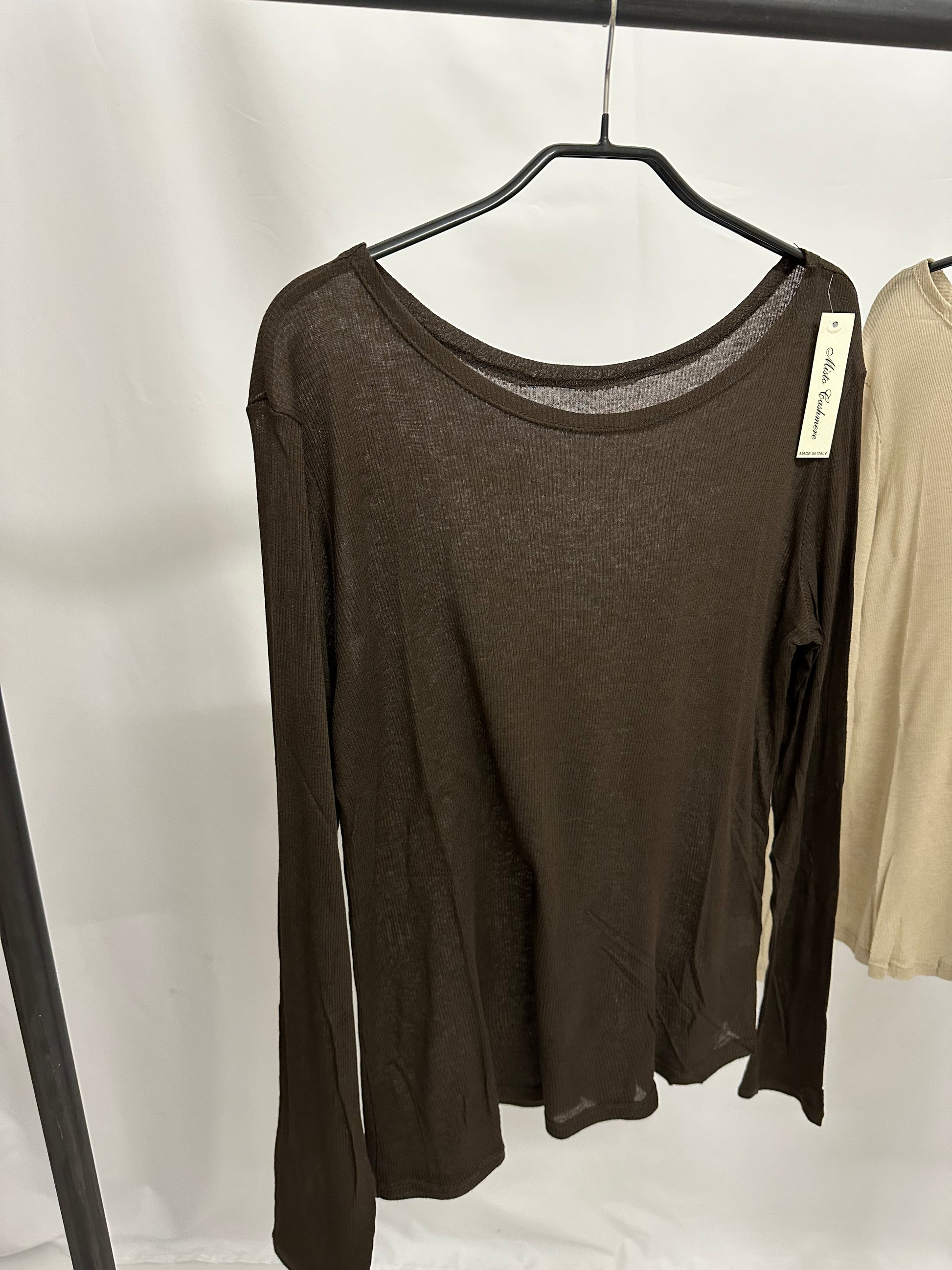 butterweiches Langarm Shirt in feiner Rippstrick Optik, großer Rundhals. Sehr dehnbar und wärmend!
