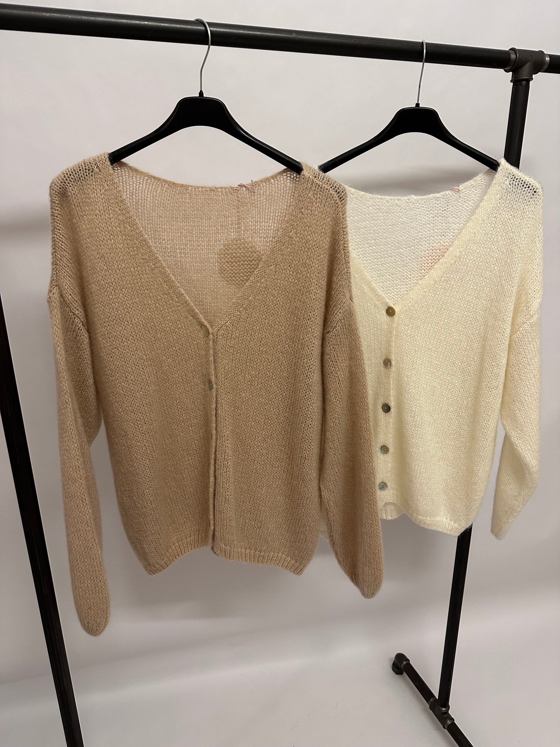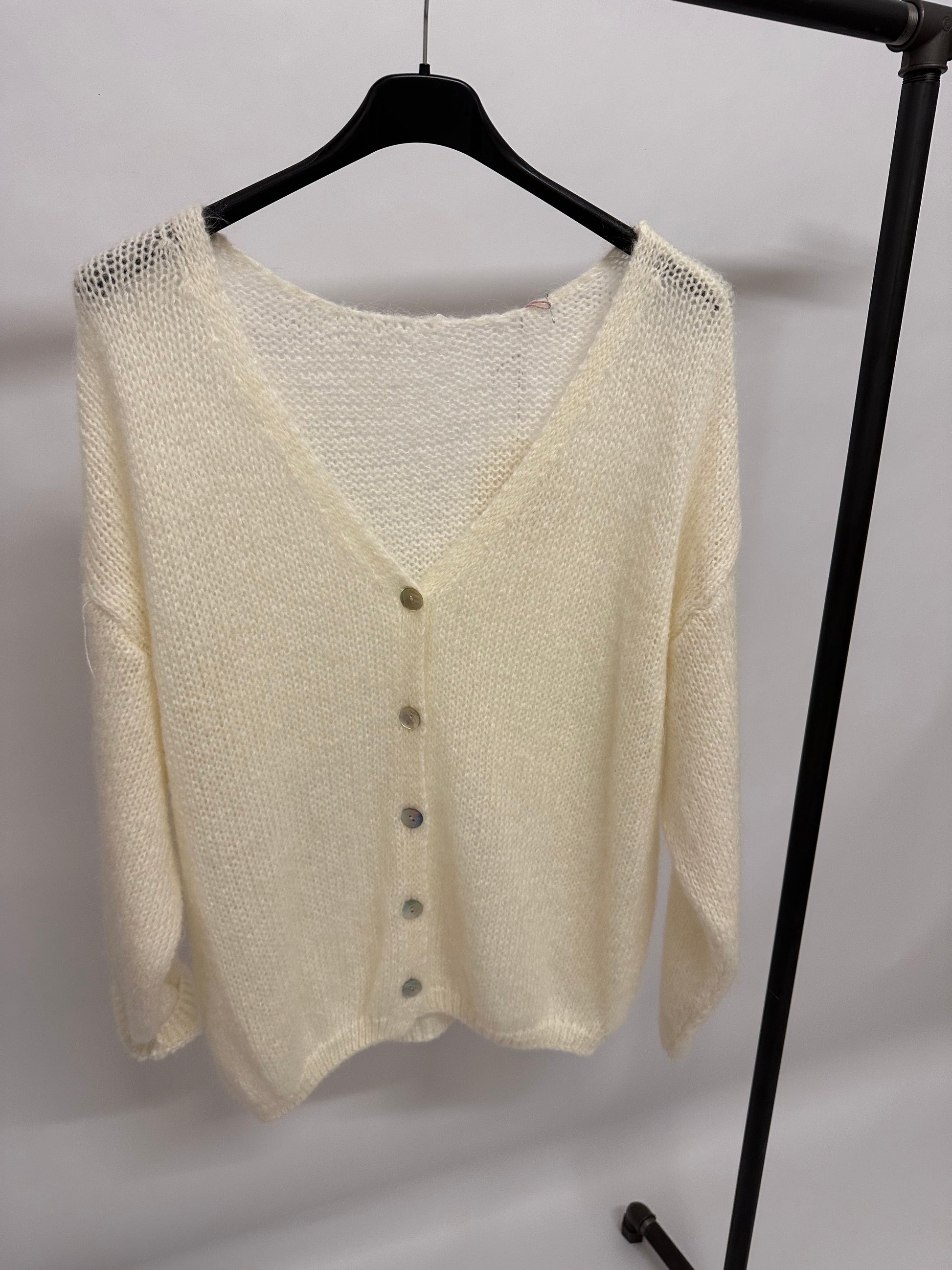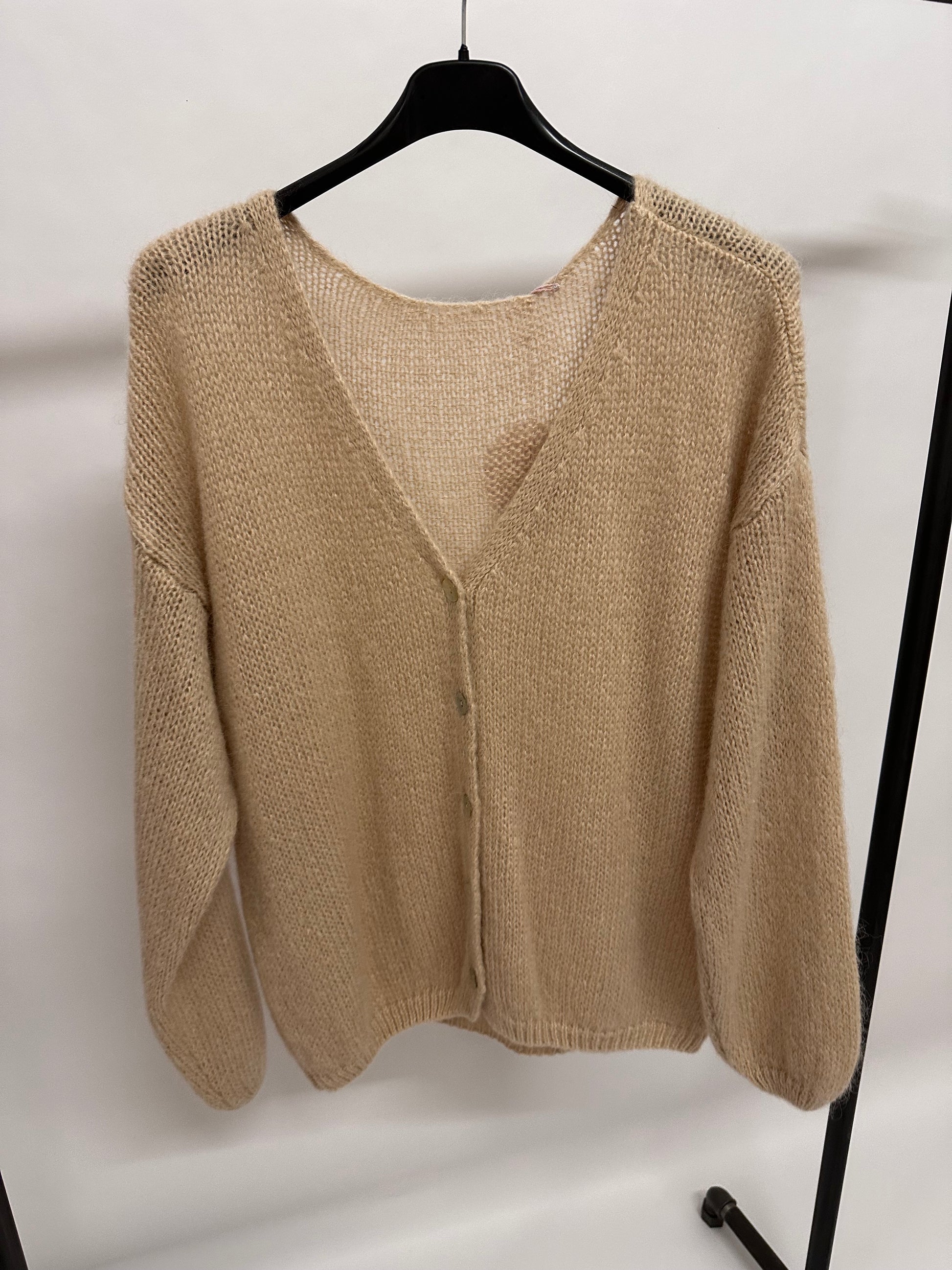 Klassische Strickjacke, geknöpft, V-Ausschnitt, kleines Bündchen.