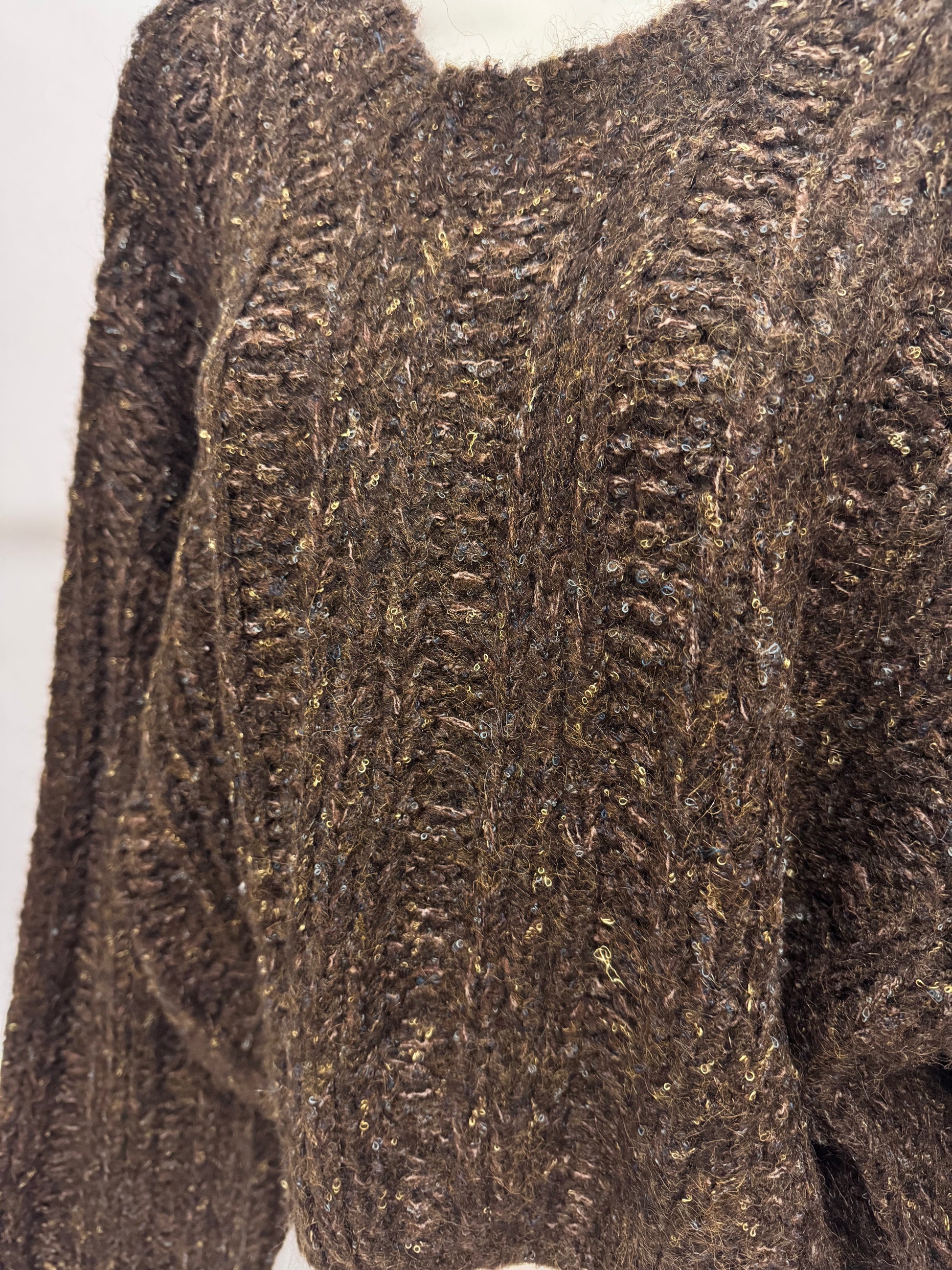 Wunderschöner Strickpulli in dunkelbraun mit leichter Melierung! Der Pullover ist im angesagten Grobstrick angefertigt und hat eine reguläre Länge, somit perfekt auf Jeans und Röcke tragbar.