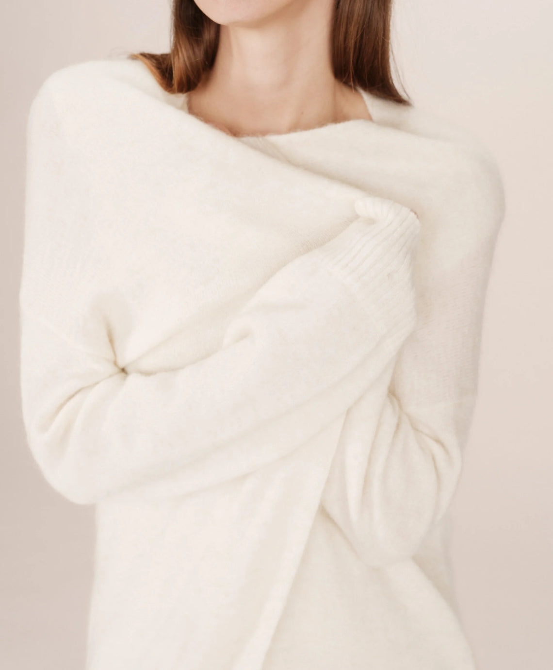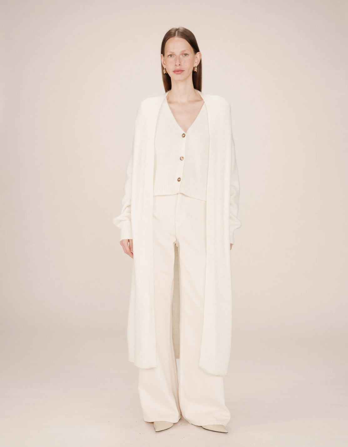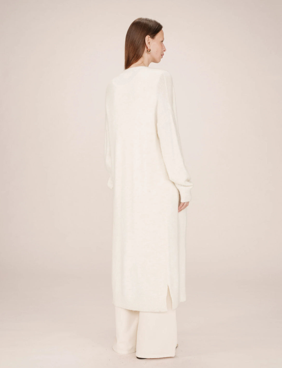 Ein Traum der Cardigan Santiago von Grace&Mila. Ein Strick aus Wolle und Mohair, lang und nicht auftragend. Das Model ist ohne Verschluss und hat kleine seitliche Schlitze.