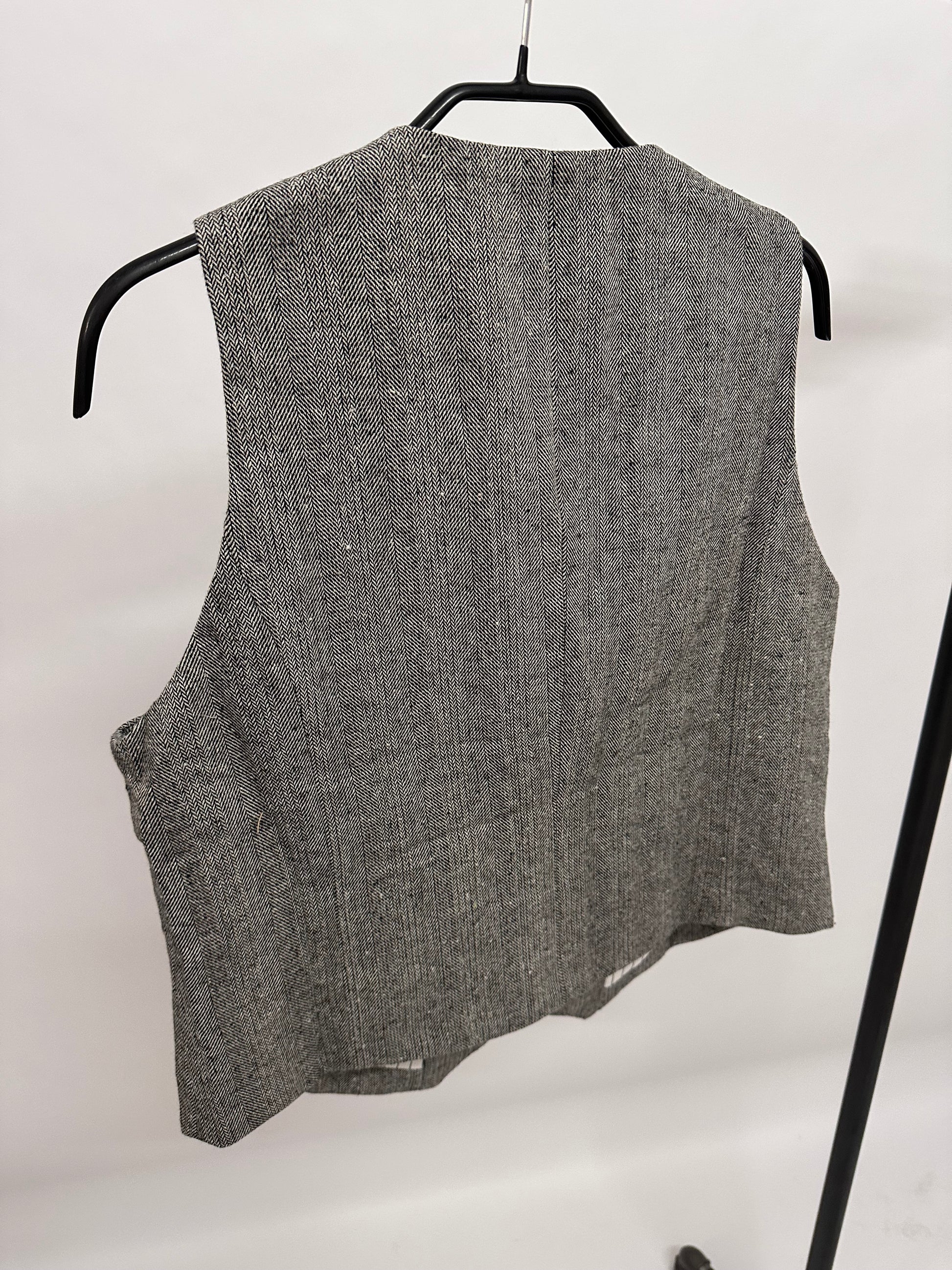 - großer V-Ausschnitt, genau so wie die klassische Herrenweste unter Anzügen.