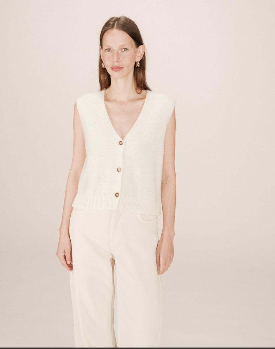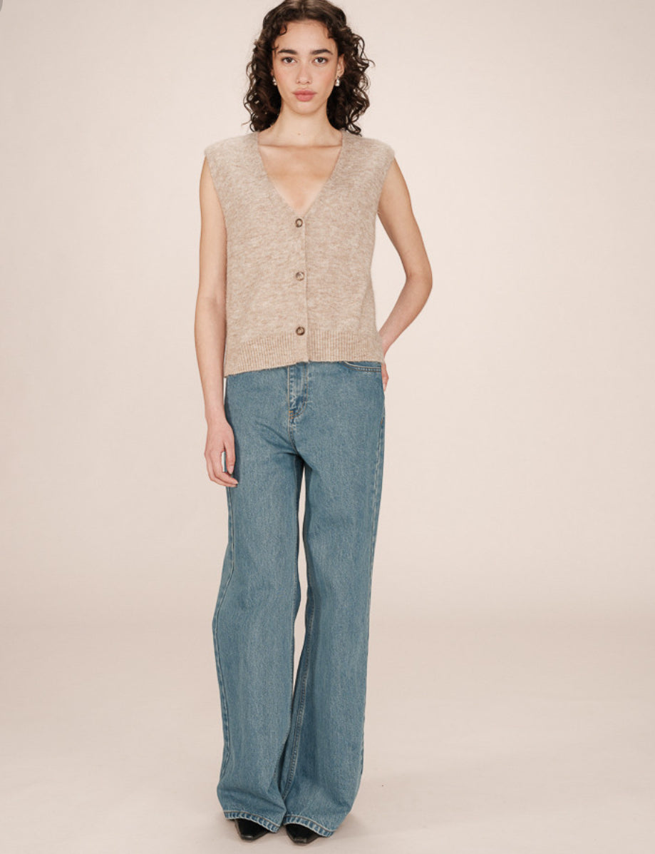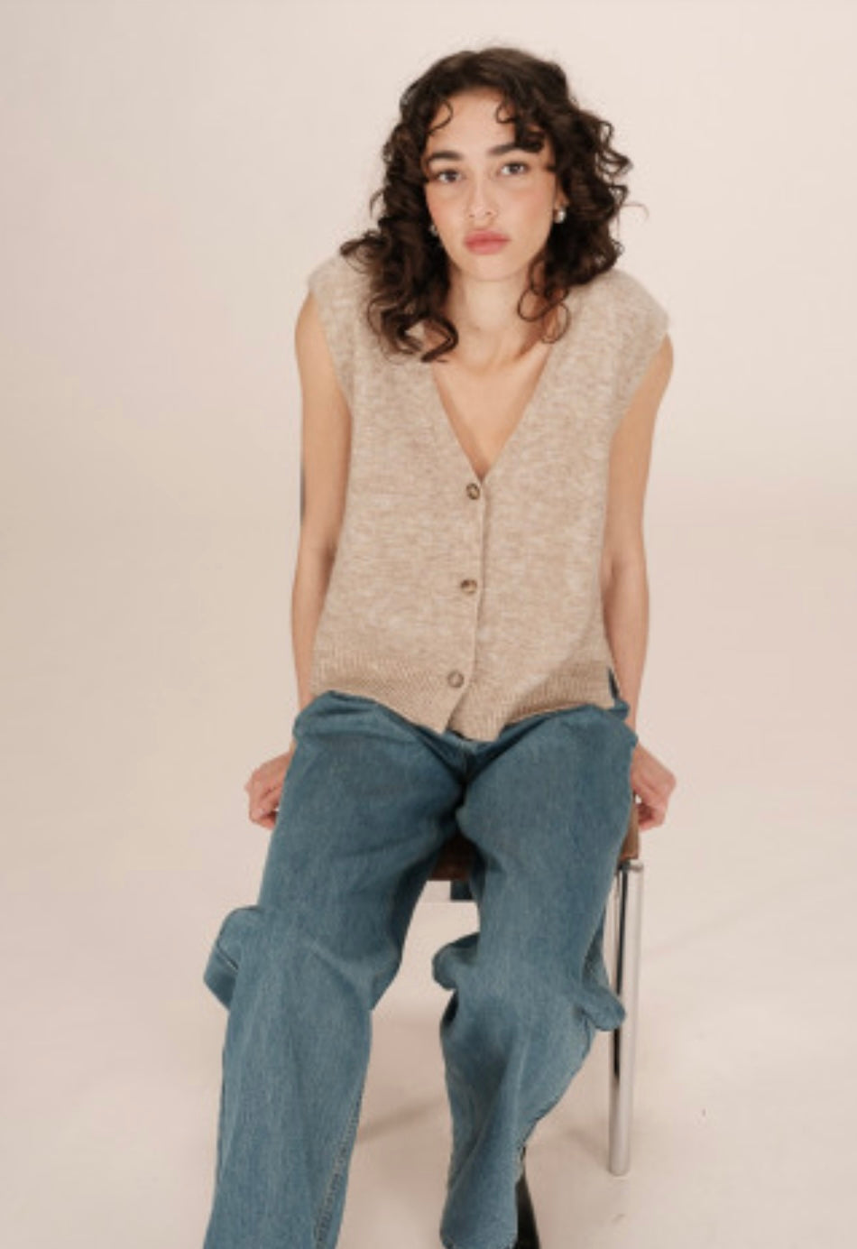 HerbstTrend 2025 sind Westen und mit dieser Strickweste liegt ihr genau richtig. Lässt sich vielseitig kombinieren und die Mischung aus Wolle und Mohair hält warm aber verleiht trotzdem einen leichten Look.